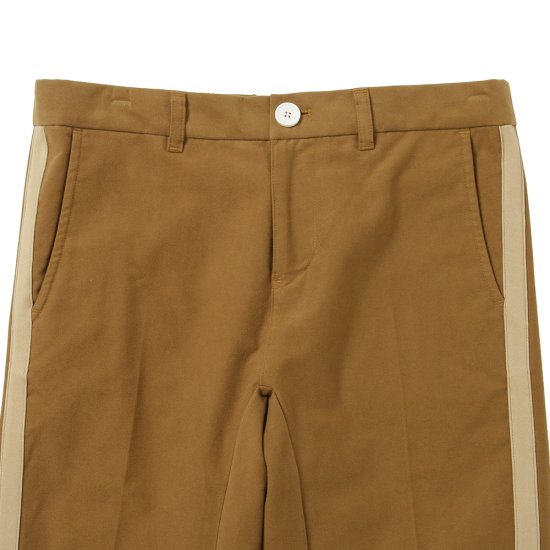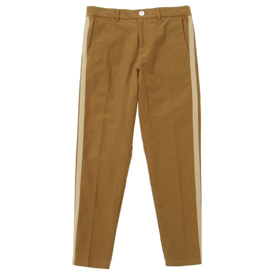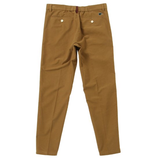 暖かく耐久性に優れたモールスキン素材を使用したパンツです。モモ周りはややゆとりを持たせ、ヒザ下はテーパードをかけており、動きやすくすっきりとしたシルエット。ストレッチも効いています。サイドに施した誇張しすぎない同系色のラインテープがさりげないアクセントに。