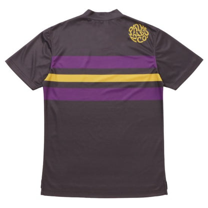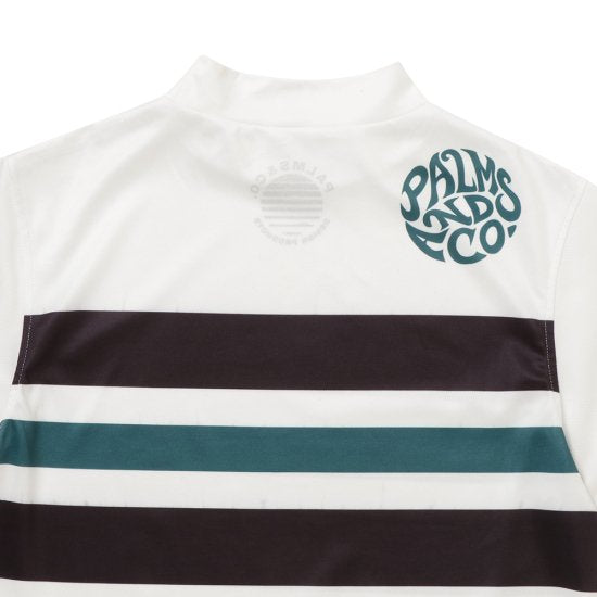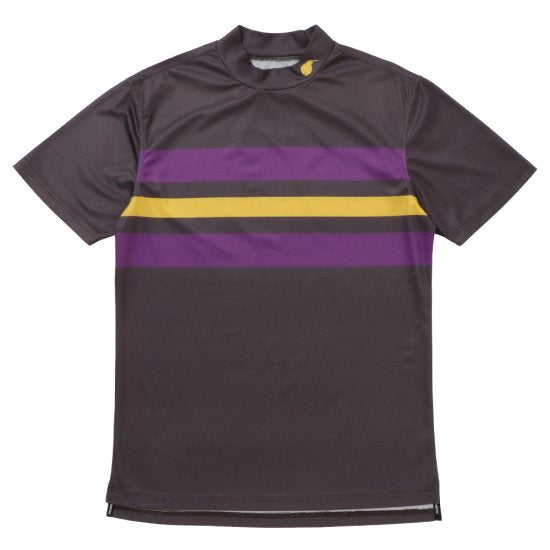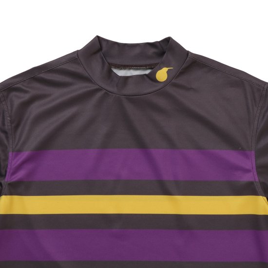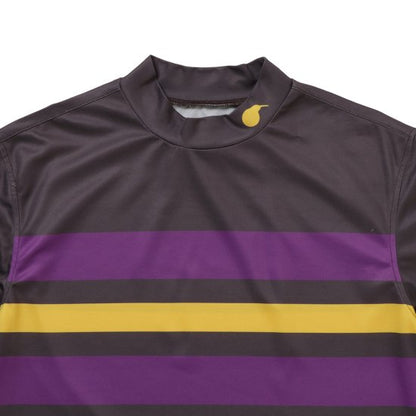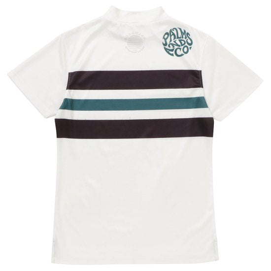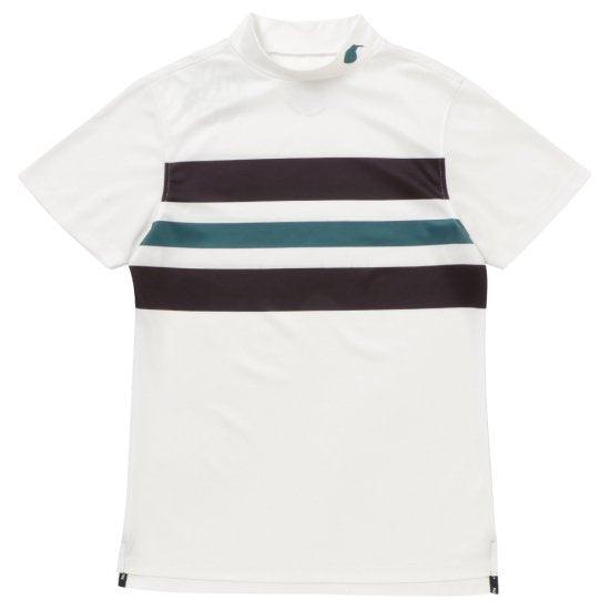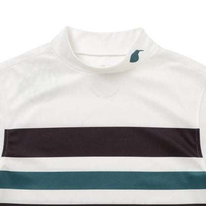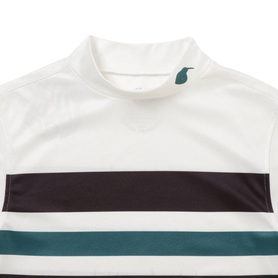 吸汗速乾性に優れた機能素材に、アクセントカラーのボーダーをプリントしたモックネックポロ。首元のKIWIロゴと背面のプリントがポイントに。