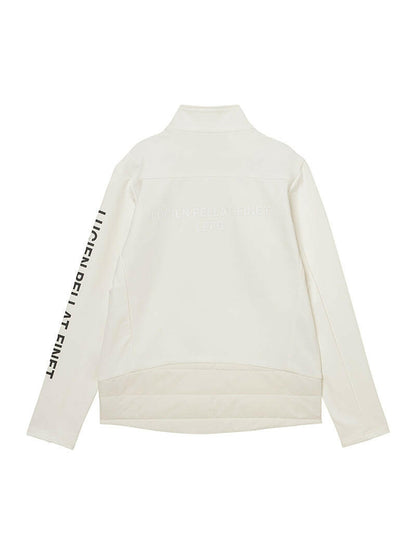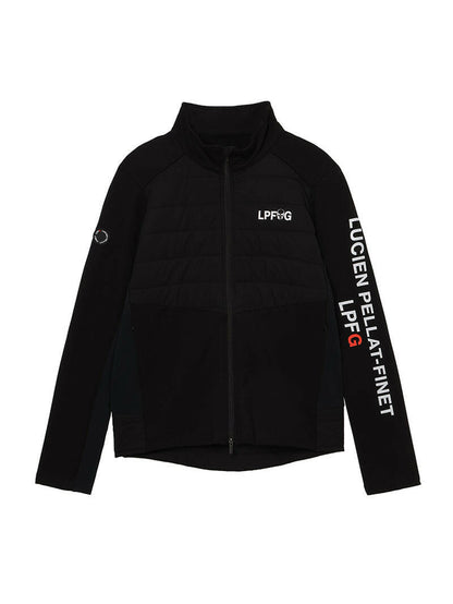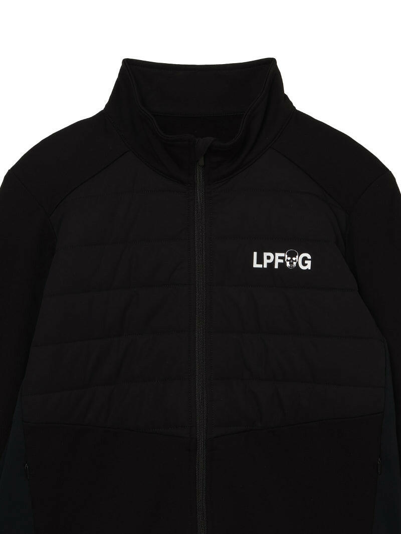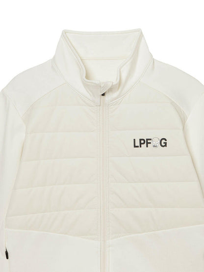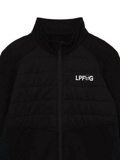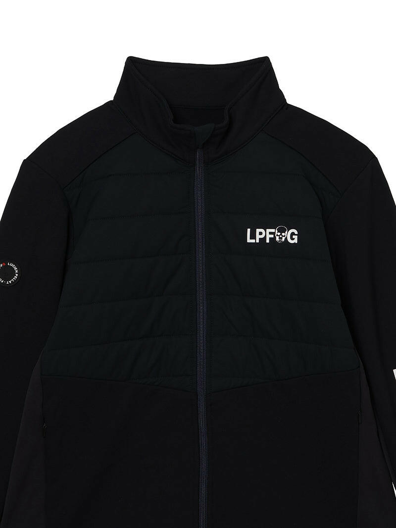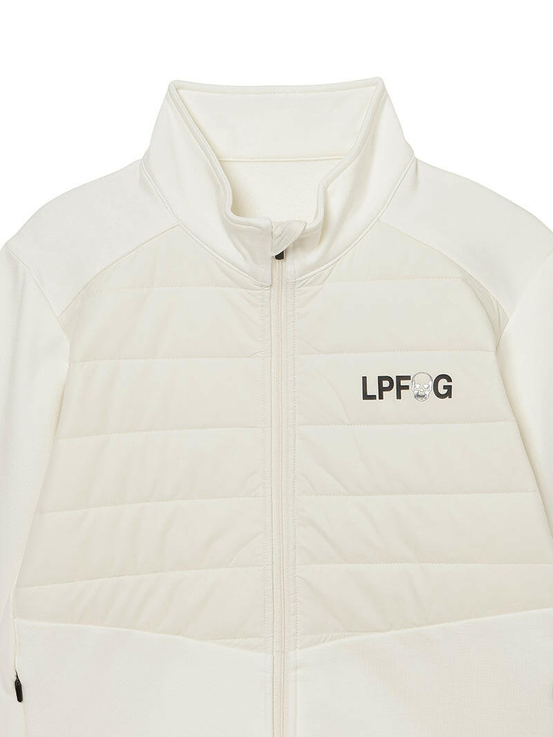 LPFGのウィメンズキルティングジャケット。マットな色合いと軽くてソフトな風合いが特徴の素材。LPFGロゴ、サークルロゴxスカル等、LPFGのアイコンとなるモチーフがワッペンやプリントで随所に表現されている。レーヨンナイロン混紡糸を使用し、ハイゲージで編まれた、程よい光沢感を備えた非常にキックバック性に優れたストレッチ、ハリ感を備えたストレッチポンチ素材となります。また裏側のしなやかなレーヨンを特殊微起毛加工を施し、非常に心地よい肌触りを表現し、糸の性質の吸湿発熱性による暖かさをより一層感じられる素材となります。抗ピル性も備えています。