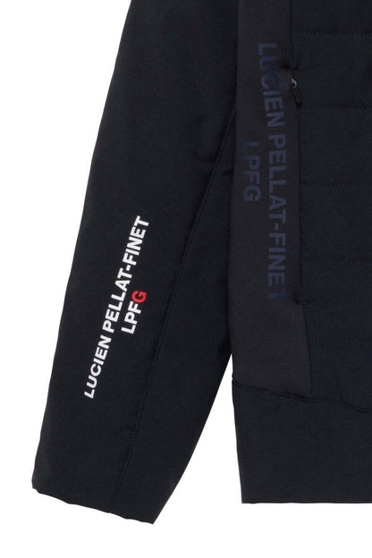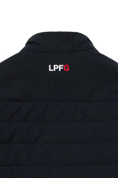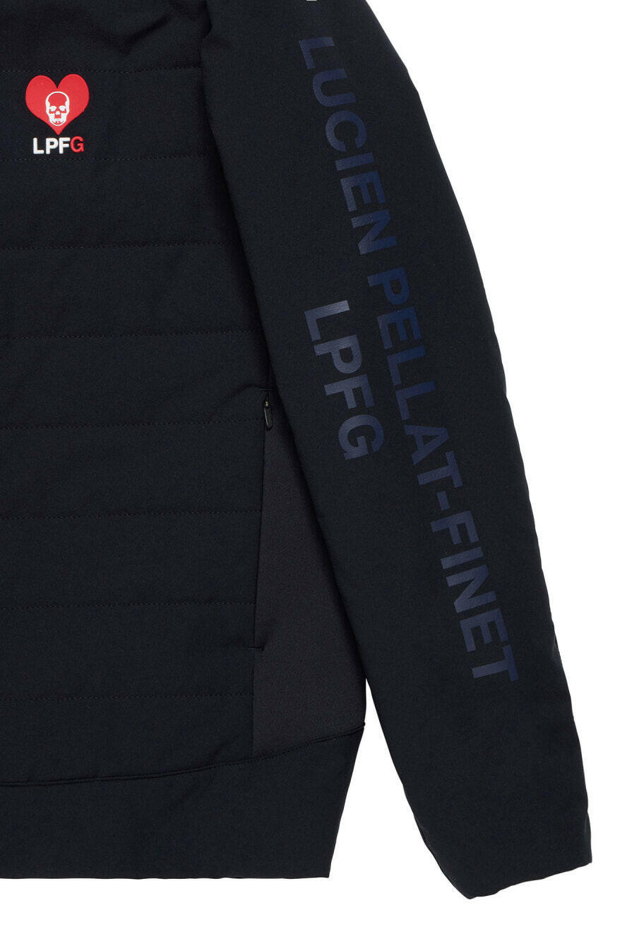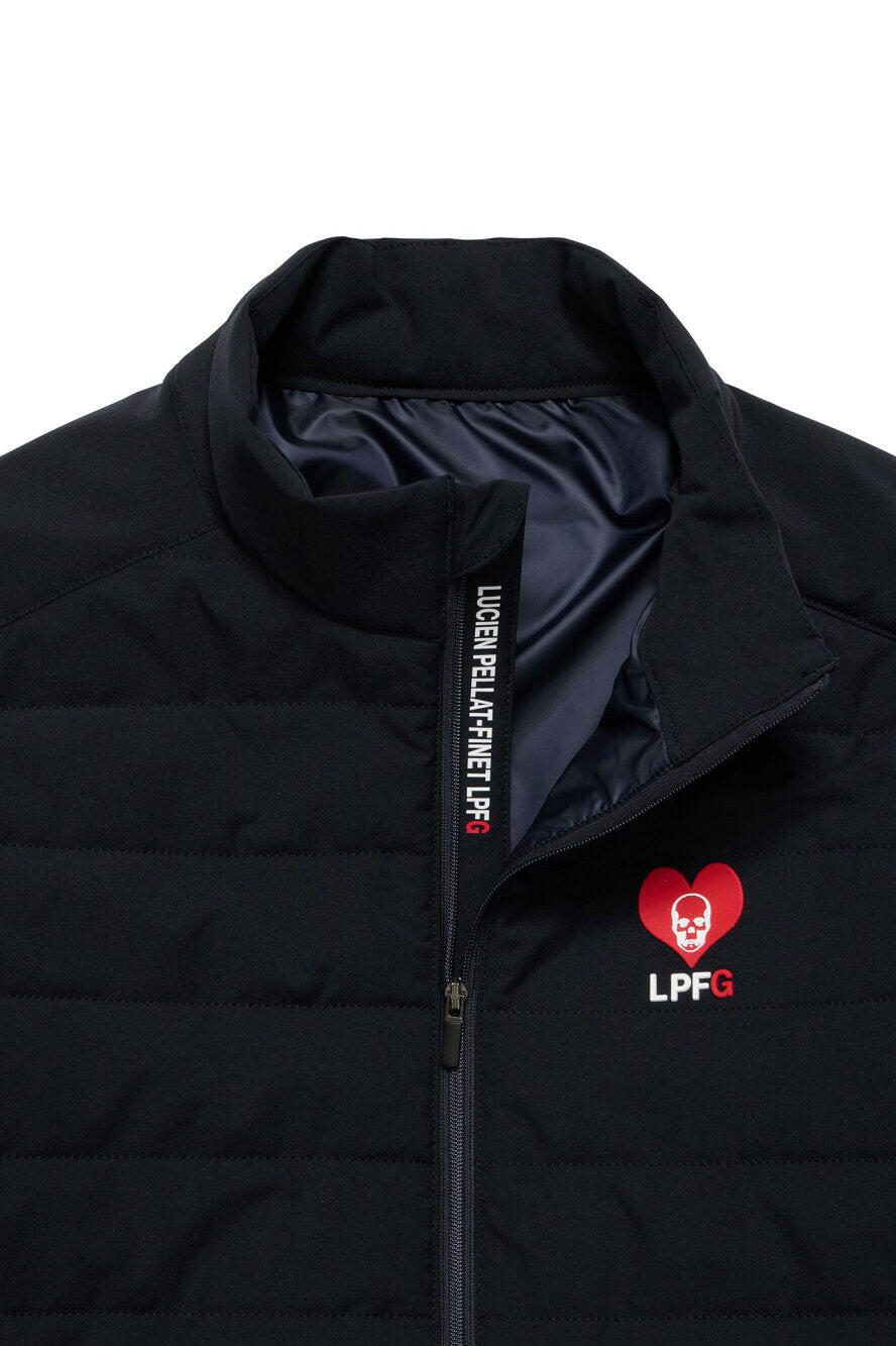 LPFGのウィメンズ中綿キルティングジャケット。主素材は軽量で寸法安定性と耐久性を兼ね備えた2WAYストレッチの撥水素材。柔軟な伸縮性とソフトな風合いが特徴。脇にはストレッチ性の高いダンボールニットを別布使い。LPFGロゴ、LPFGハートスカル、サークルロゴxスカル等、LPFGのアイコンとなるモチーフがワッペンやプリントで随所に表現されている。