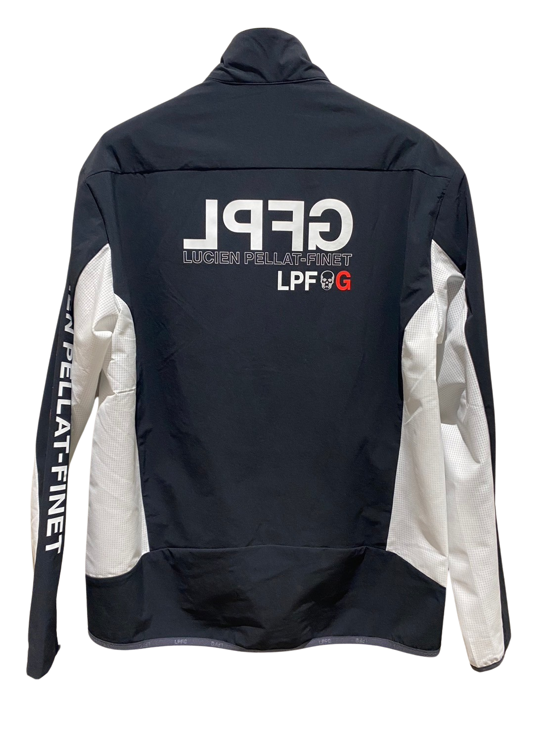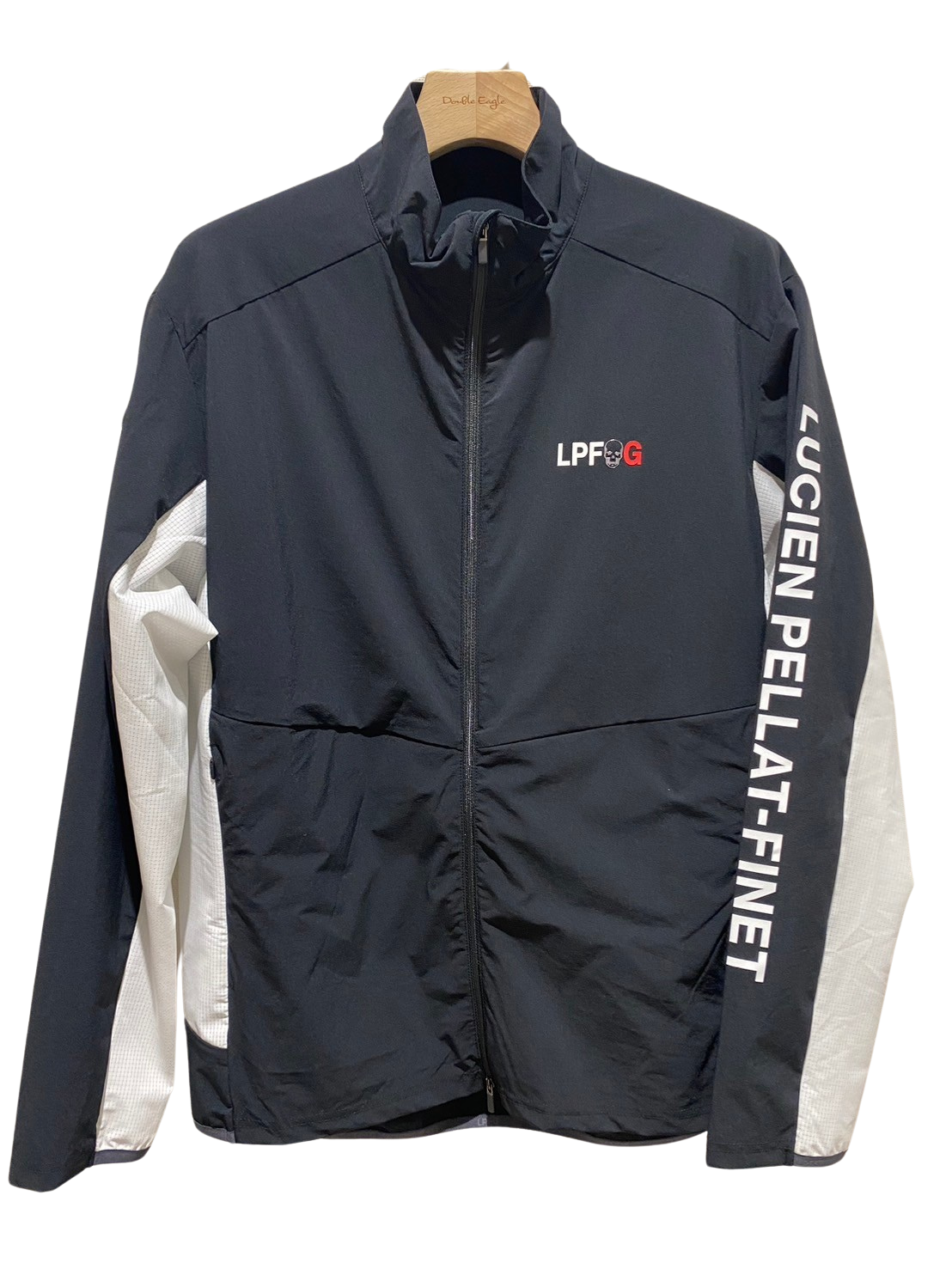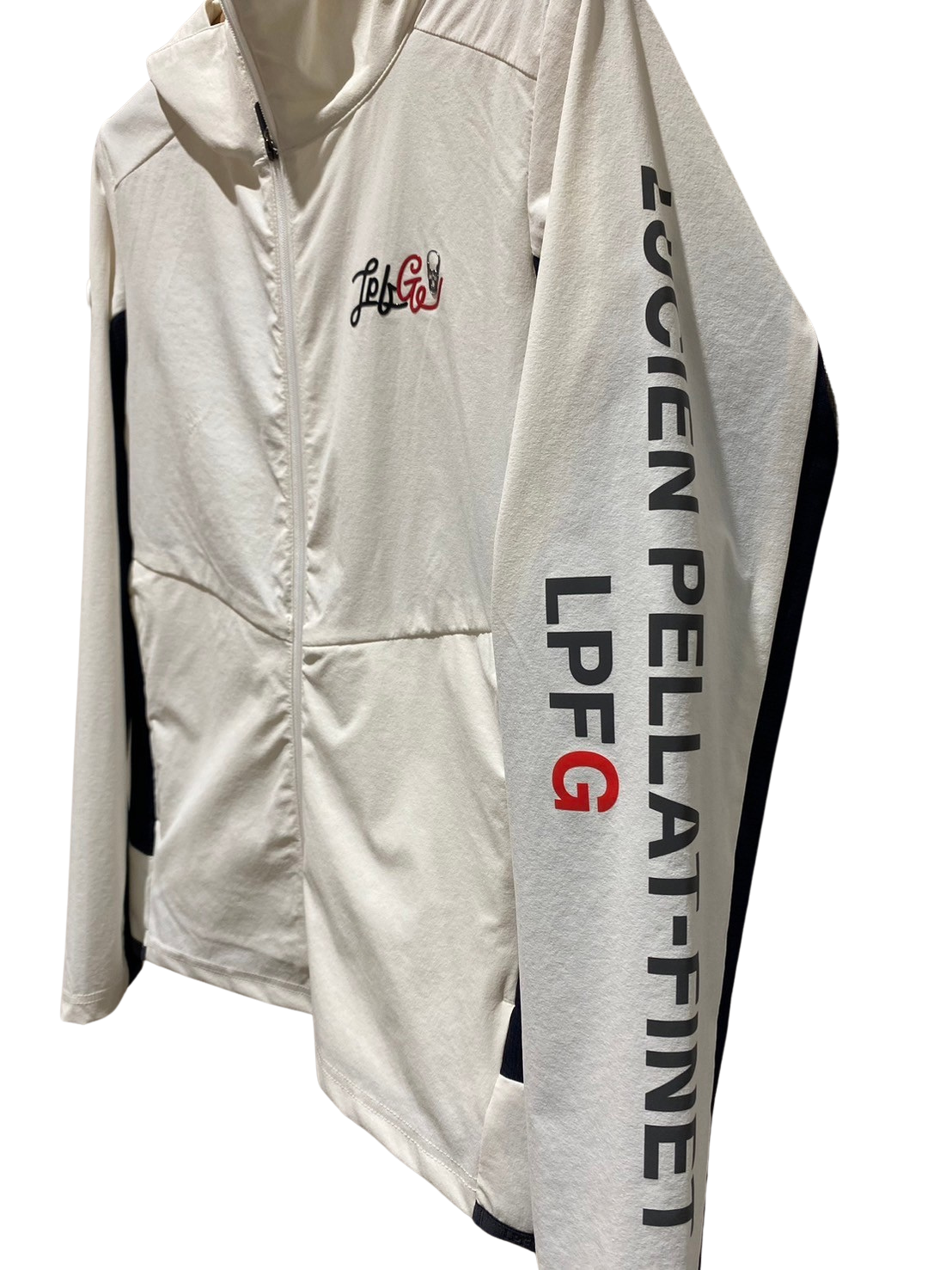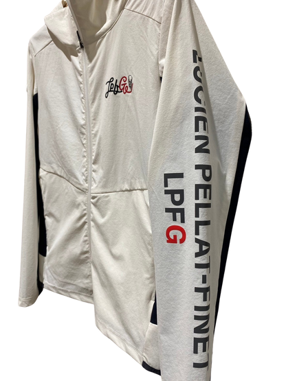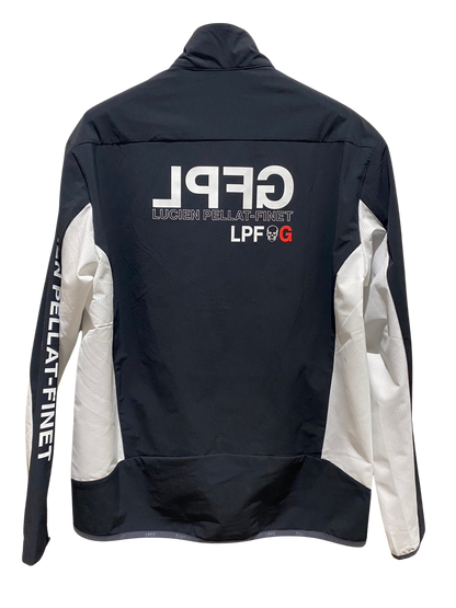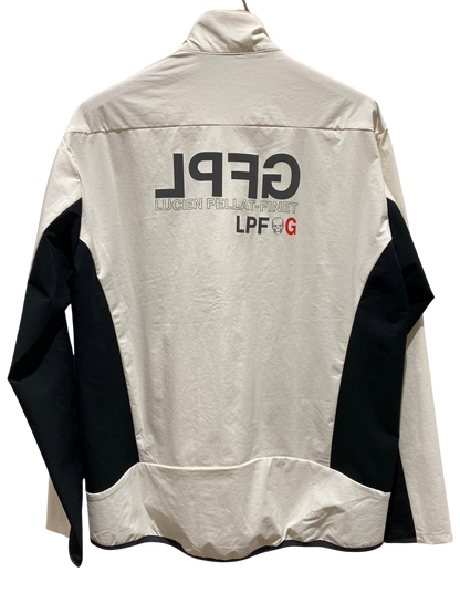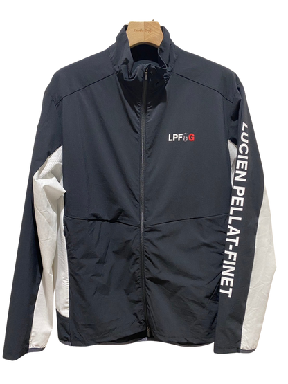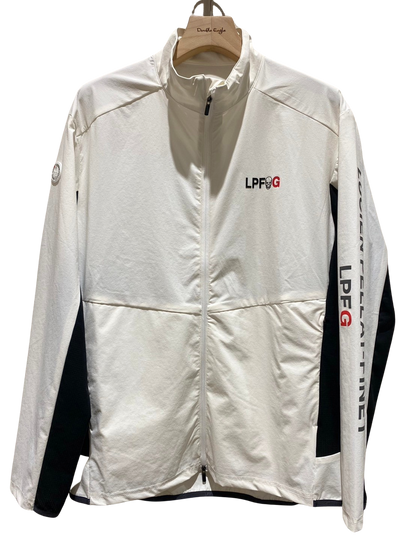 LPFGのメンズジップジャケット。滑らかな肌触りと高いストレッチ性を併せ持つアクティブな素材で、快適な着心地。LPFGロゴを反転させて、背中にデザイン。70デニールのハイマルチナイロン糸にポリウレタンをブレンドした糸を使用し、キックバックに非常に優れた2WAYストレッチ性、ハリ感を備え , UVカット , 接触冷感 , 防シワ , 撥水と多機能を備えた素材。