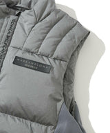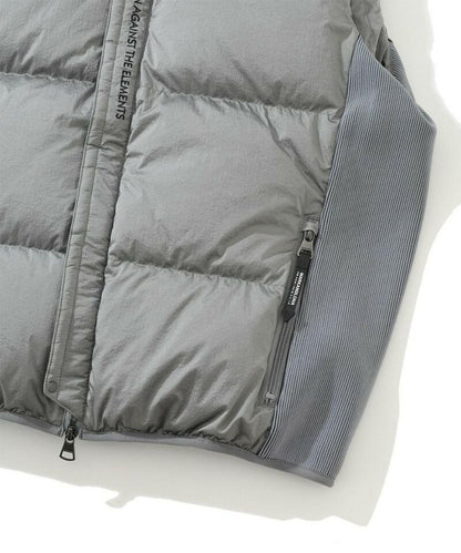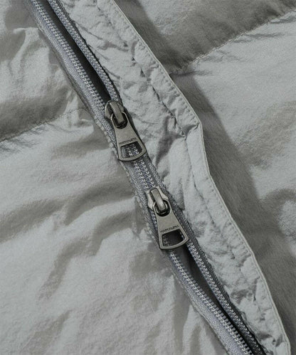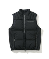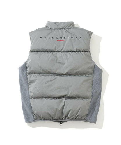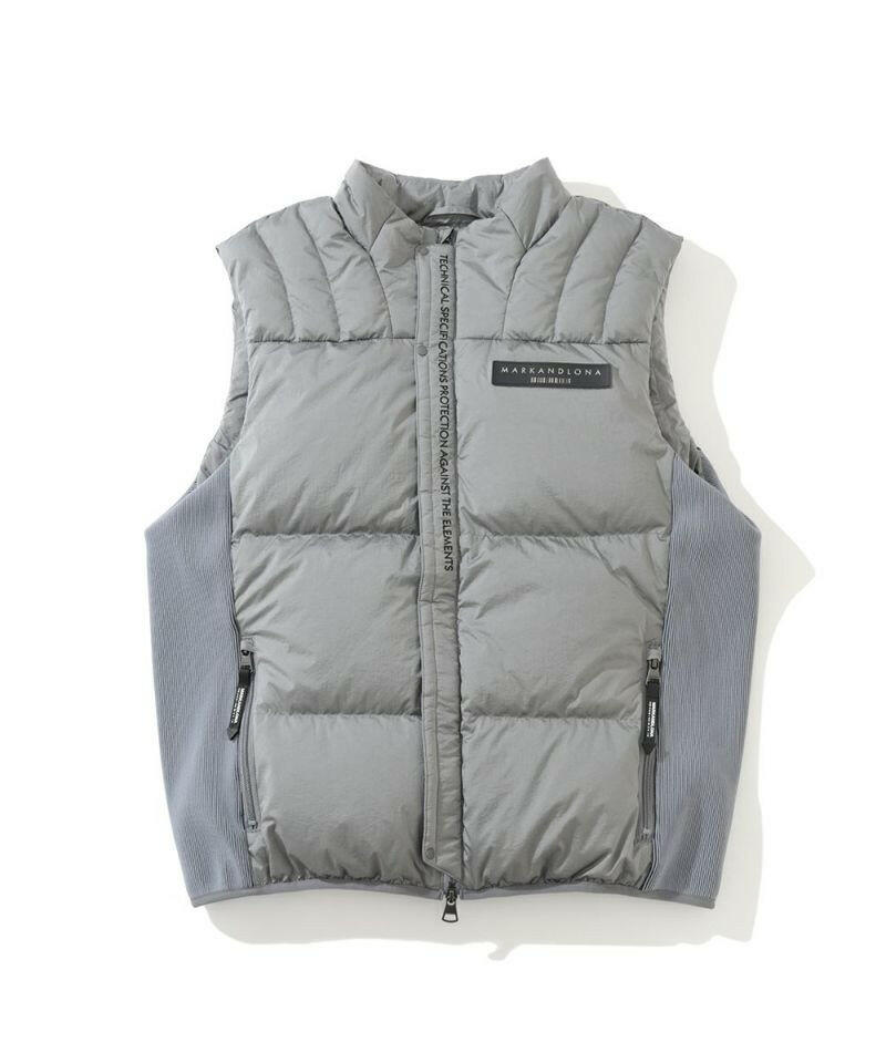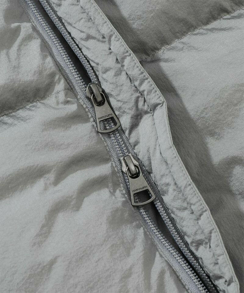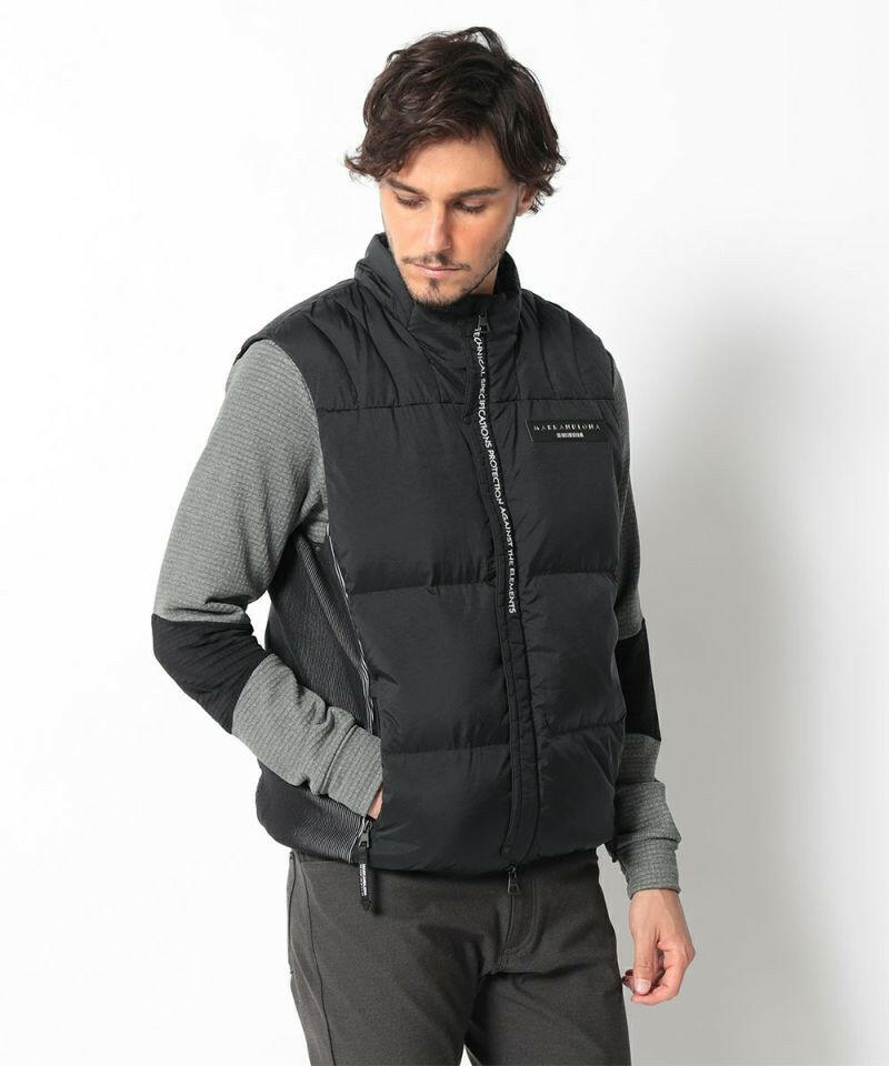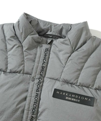 軽さと耐久性を備えつつ、独特なシボ感とムラ感が楽しめる軽量タフタダウンベスト。フロントにテキストロゴ刺繍、ヨークにブランドロゴ刺繍、左胸にブランドロゴをメタリックに表現した合皮ワッペンをあしらいました。ファスナーの引き手にはCODEロゴ入りテープを採用しています。スイングに必要なゆとりをキープしたややタイトフィットなサイズ感で、ウエストをほどよく絞ったシャープなシルエット。裾はストレッチバインダー仕様で、風の侵入を防ぎつつフィット感を高める構造になっています。