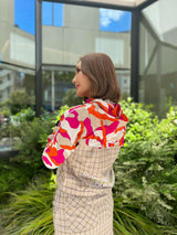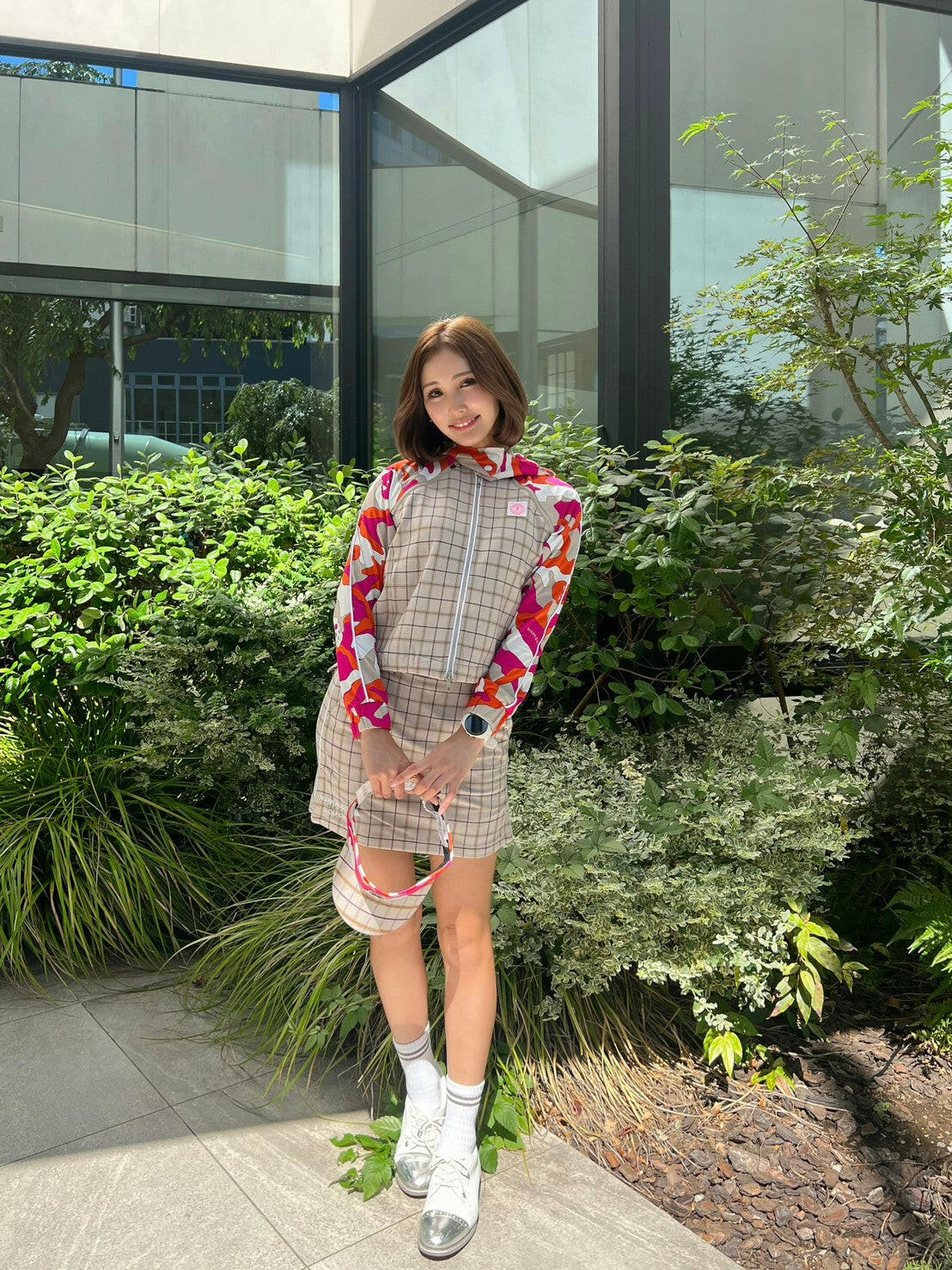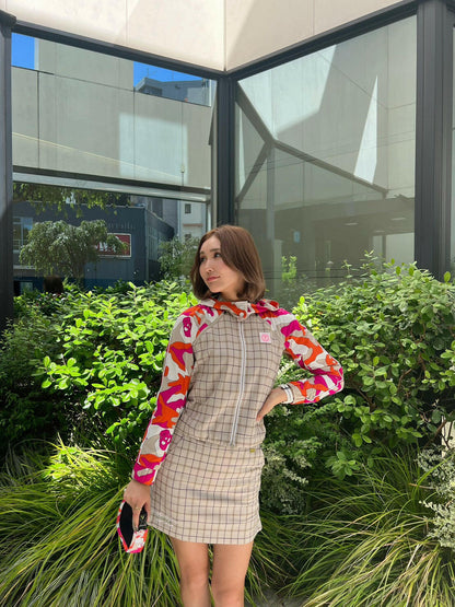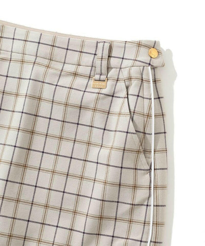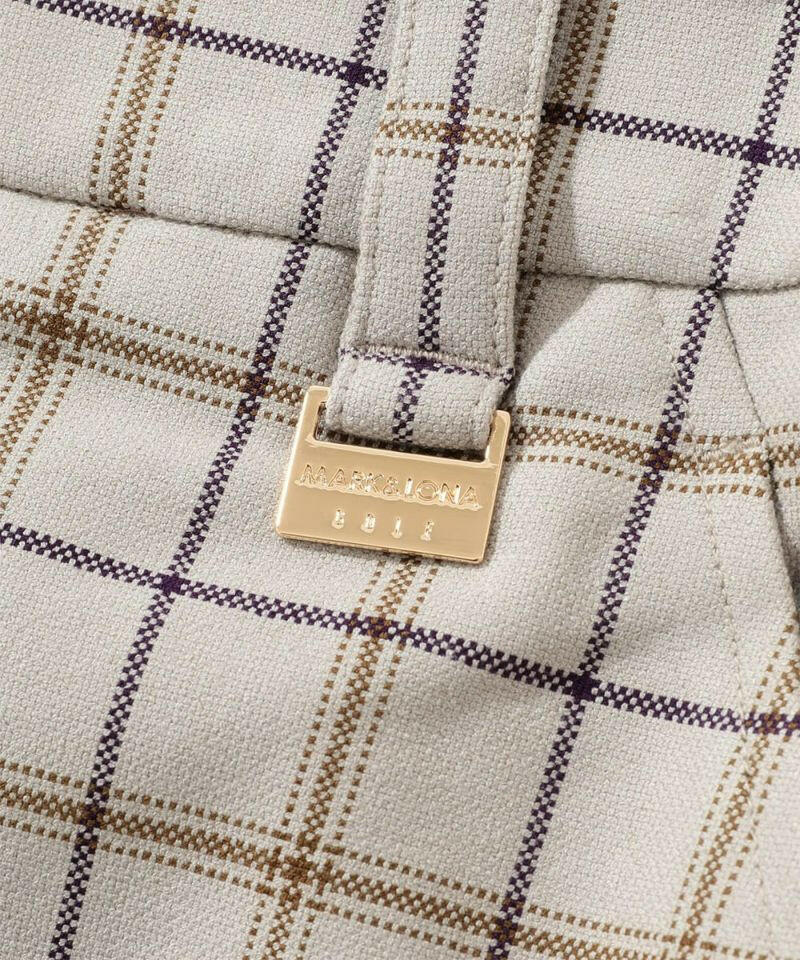 クラシカルなオックスチェックをスポーティなアイテムに落とし込んだ“ネオクラシック”なサイドスリット入りタイトスカート。左前ベルトループにロゴ刻印入りミニチャーム、右前スカートにブランドロゴ刺繍、右後ろポケットにサークルスカルデザインの織りネームワッペン、左脇ベルトにロゴが刻印されたラバータッチのプランサーボタンを配しました。タイトフィットシルエットで、両脇にベンツ開きのスリット入り。同じオックスチェック素材を使ったアウター(MLW-3C-AD02)とのセットアップや、同じ織りネームワッペンを用いたモックネックTシャツ(MLW-3C-AA03)とのコーディネートがおすすめです。