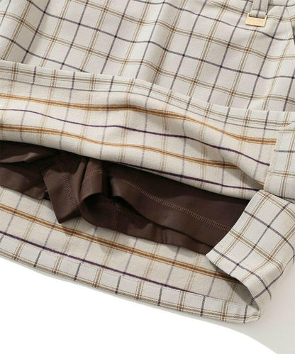 ソフトな風合いと優れた保温効果をもつアクリル×レーヨンの裏起毛素材を採用。吸汗・発熱性をもつ暖かい素材で、蒸れにくくしなやかな肌触りが特徴です。左脇ファスナー開きになっており、ウエストにはゴムインベルを使用。耐久性、寸法安定性、着心地のよさを追求しました。ミニ丈でも安心なインナーパンツ付き。