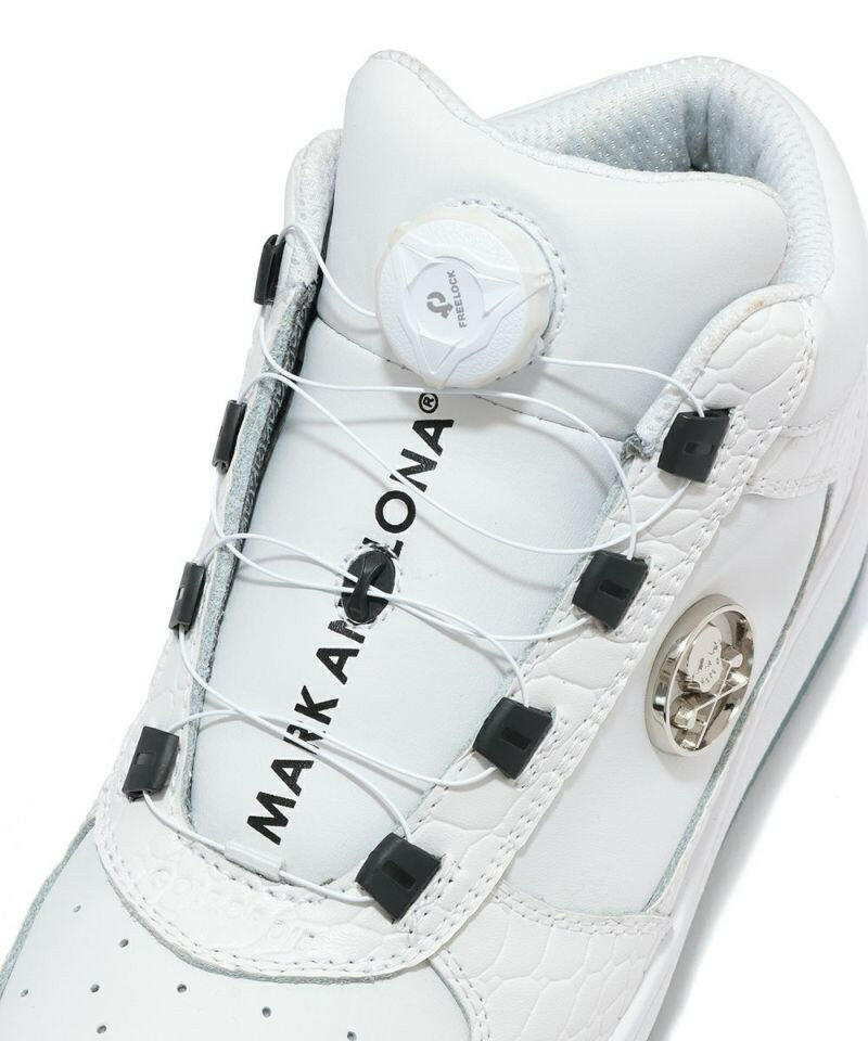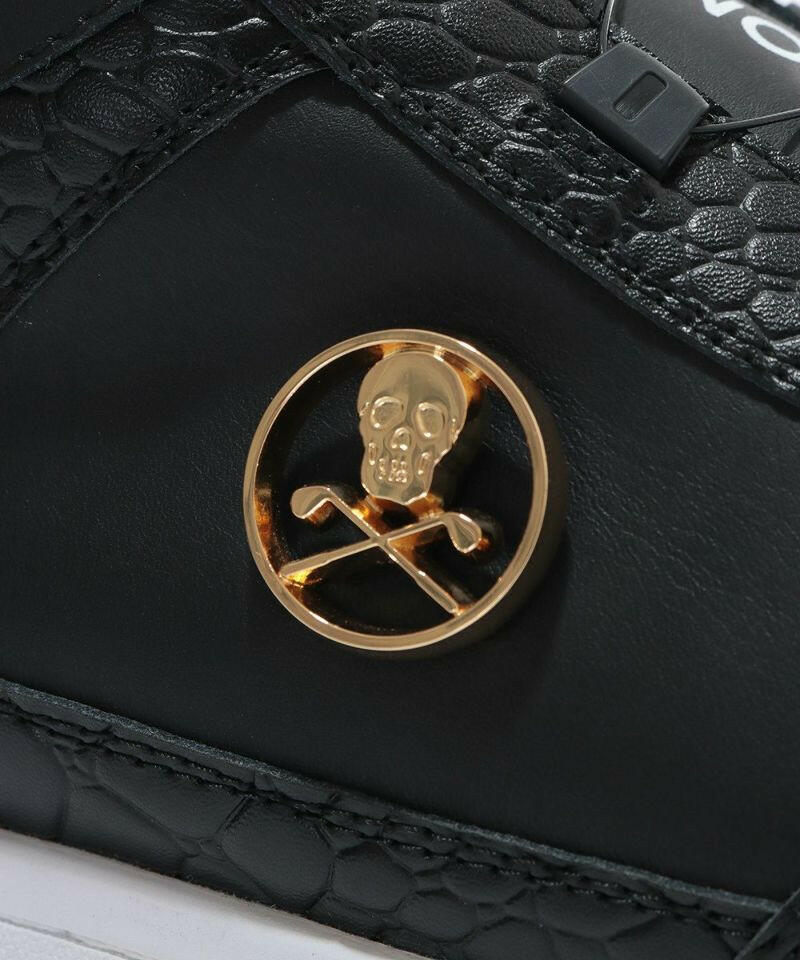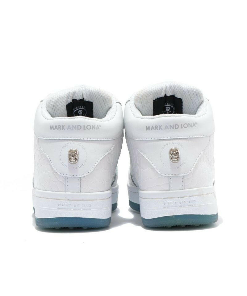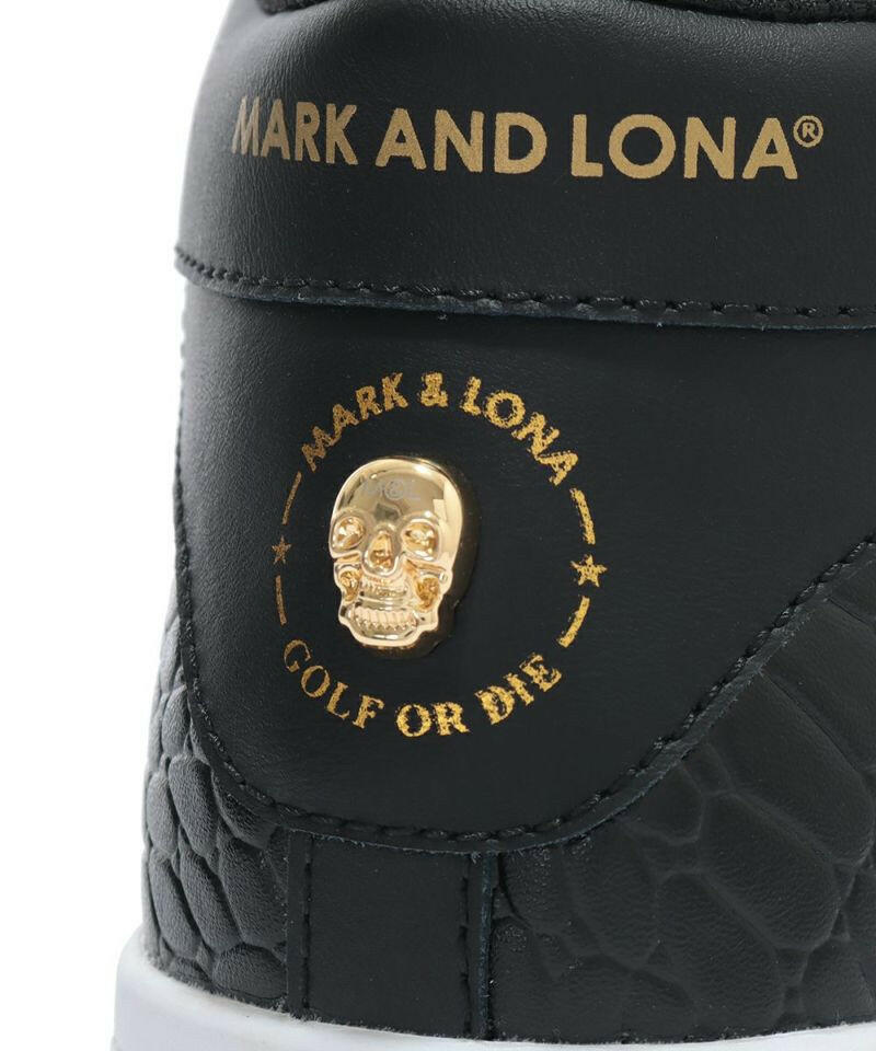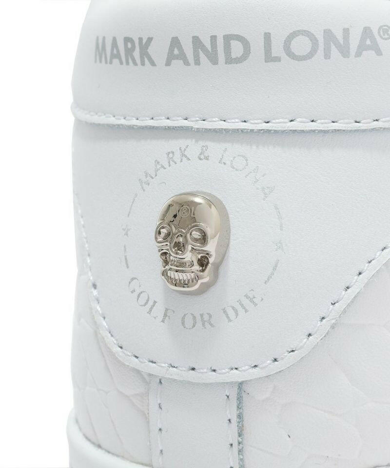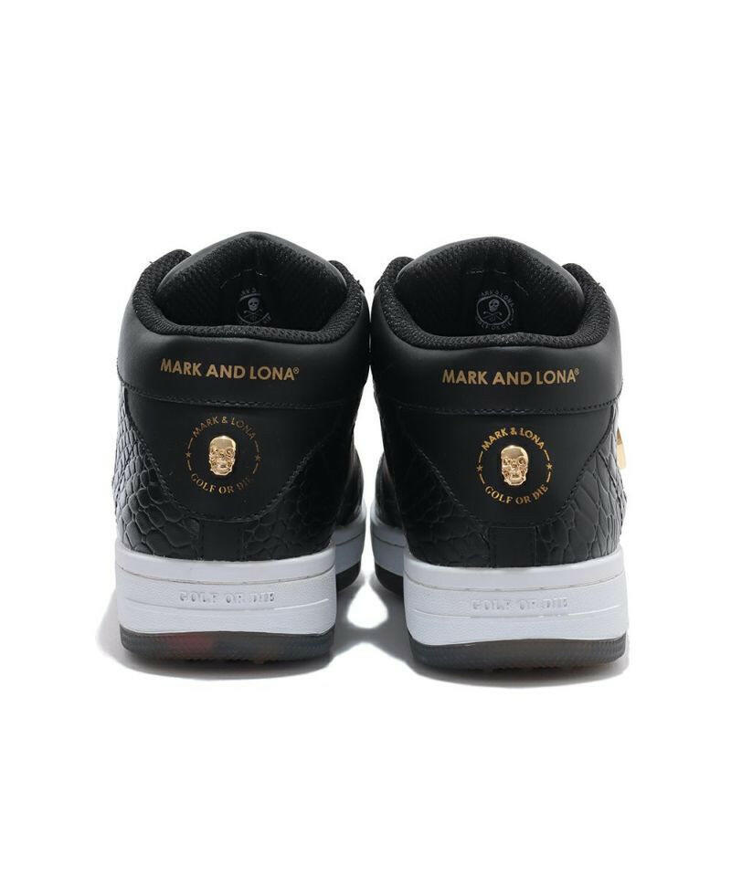 MARK & LONAらしいデザイン性の高さと機能性を兼ね備えた、ミドルカットタイプのスパイクレススニーカー。アッパー素材にマットスムースな牛革、セミグロスのクロコダイル型押し牛革を使用。サイドには鏡面仕上げのサークルスカルメタルバッジ、バックにはスカルスタッズを配し、シンプルな機能美によって高級感と存在感のある仕上がりになっています。ソールにはオリジナルのクリアアウトソールを採用。さまざまな凹凸をつけた星型スパイクがしっかりと芝を捉え、あらゆるコンディションのゴルフコースで機能的にプレイを助けます。そのクリアソールから透けて見えるのは、MARK & LONAを代表するスカルカモフラージュ。シンプルなアッパーとコントラストのあるポップな配色が、ショットの後や歩く際に見え隠れします。また、ミッドソールにもボックスロゴ入りです。