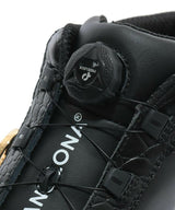 ダイヤルを回してワイヤーを締められるフリーロックシステムを採用。簡単に緩めたり締めたりを繰り返すことができ、ミッドカットならではのほどよい足首のホールド感も直感的に調節可能です。履き口は足あたりの心地よさとホールド感を追求。シュータンの裏側やかかと部分などを肉厚にすることで、歩いても靴擦れしにくい快適な履き心地を実現しました。