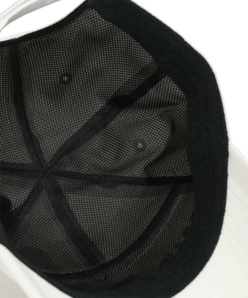 2WAYストレッチ生地を使用した変形パネルキャップ。ミニマルなワントーンでの表現がシャープな印象。クラウン部分は、ジェットキャップとベースボールキャップを組み合わせたような変形パターン。ジェットキャップ特有の丸みを帯びた浅めのシルエットと、軽くカーブしたバイザーのハイブリッドモードなデザイン。余ったテープはクラウンの内側に仕舞い込んで、すっきりと着用できる構造です。