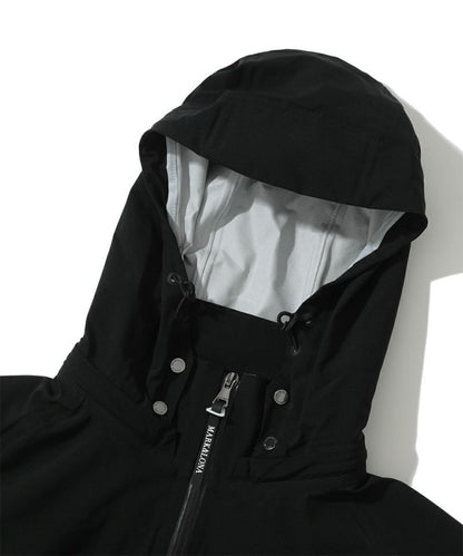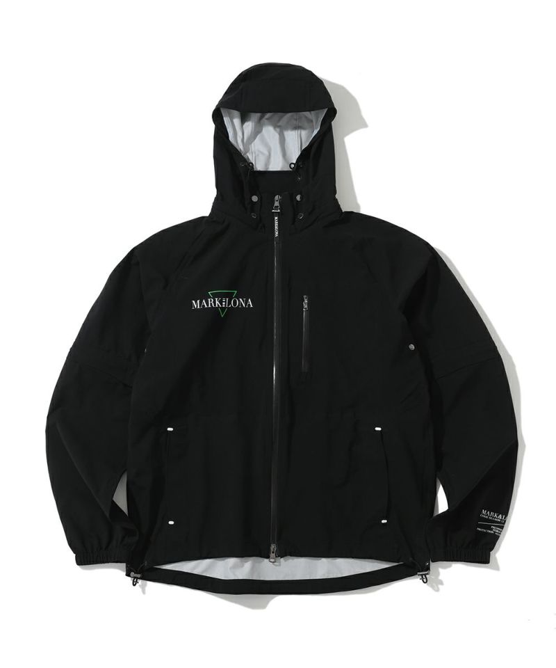 ディタッチャブルスリーブ2WAYテクニカルレインジャケット。優れた防水性と透湿性のバランスにより衣服内を快適にキープ。長めの丈でヒップ周りの雨水、風の侵入をカバーします。また高いストレッチ性、撥水透湿性、耐風性、通気性、柔軟性、軽量性に優れ、耐水圧20,000㎜レベル、透湿度26,000g/m²/24hrレベル。袖が取り外し可能な2WAY仕様。またフードも着脱可能。ポータブルな同素材のポーチを付属。