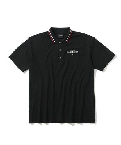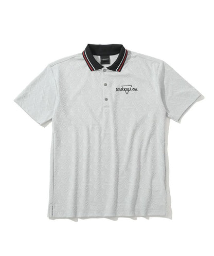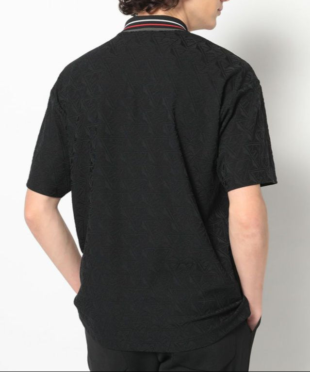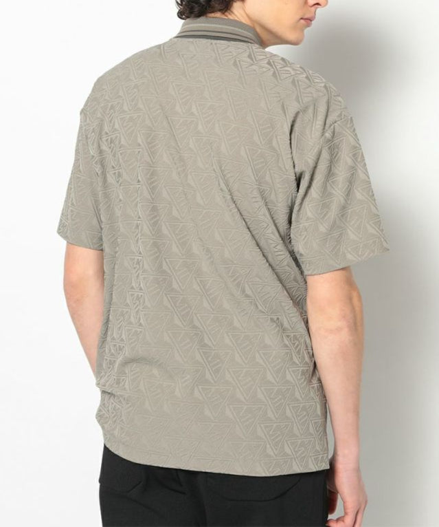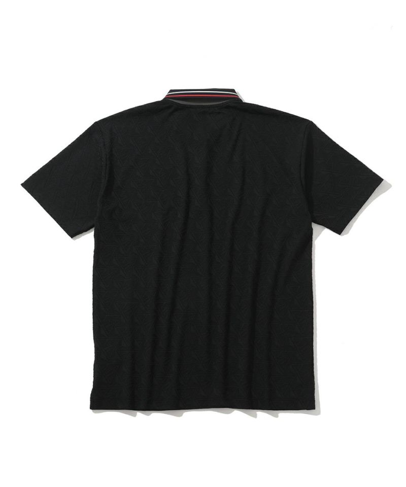 トライアングルロゴを立体的にジャカードで表現したジオメトリックパターンのポロシャツ。身頃と肩まわりにゆとりをもたせつつ、襟や袖周りをシャープにすることで洗練されたスタイル。高いストレッチ性と吸水性、通気性が特徴のポリエステル素材で快適な着用感。シンプルなフォルムで様々なボトムとコーディネートし易い汎用性の高いアイテムです。