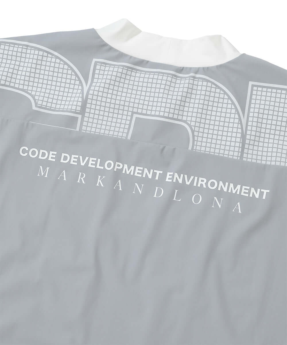 多彩なロゴ表現(プリント・エンボス加工)を取り入れたデザインと、快適な着心地を両立したモダンなモックネックTシャツ。