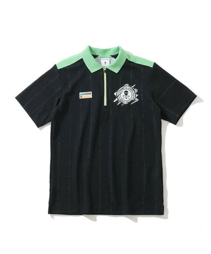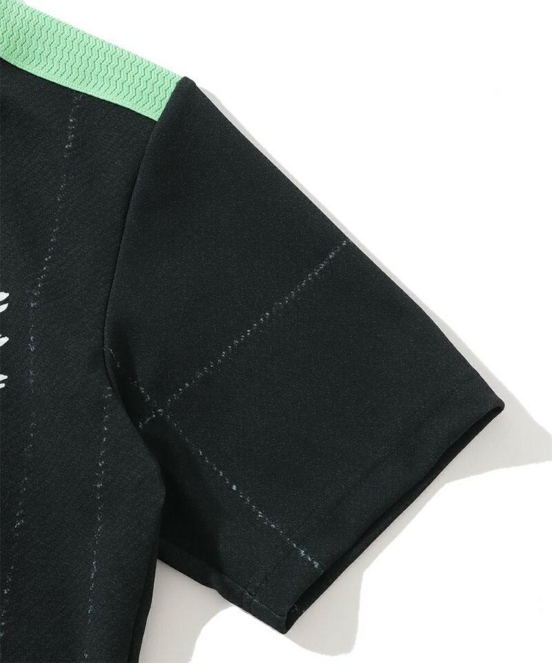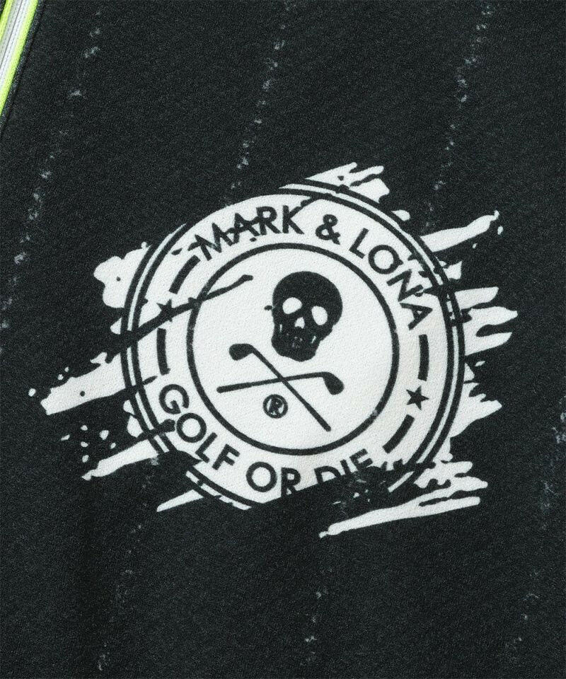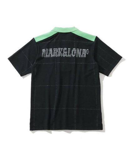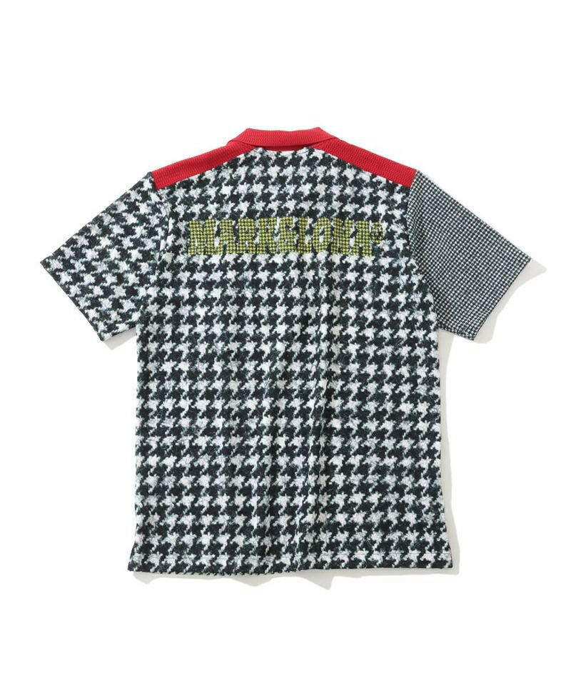 プリントだからこそできるテクニックを盛りこんだ、コントラストカラーが際立つ半袖ポロシャツ。高精細プリント生地を使用し、先染めウールのチェック生地かと見間違うような仕上がりを実現。左胸にペイント風サークルスカルロゴのプリント、右胸にゴルフコースネーム、背中に高精細な千鳥柄のBIGブランドロゴプリントを施しました。身頃と肩まわりにゆとりをもたせつつ、袖をシャープにすることで洗練されたスタイルに仕上げています。