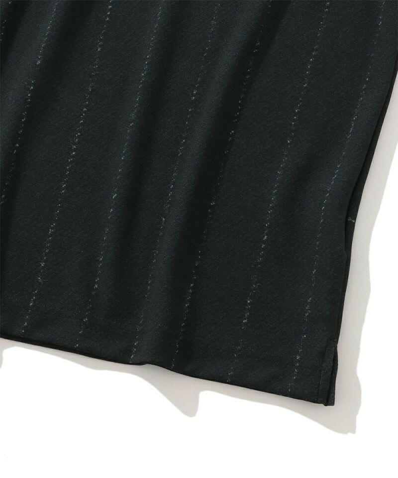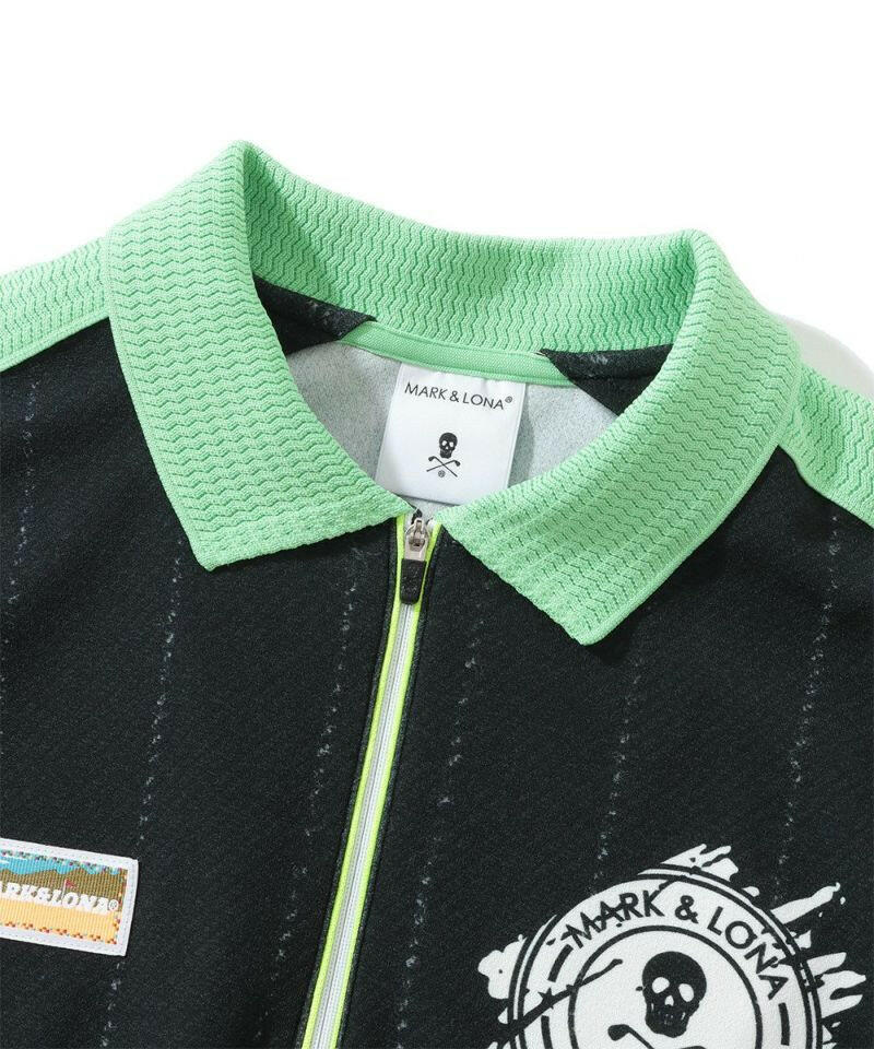 まるでジョーゼットのように繊細な見た目をもつダンボール素材を採用。高いストレッチ性とキックバック力に加え、ポリエステルの吸放湿性や通気性も兼ね備えています。凹凸を効かせたコントラストカラーの編み立てリブを、襟だけでなくヨークにも採用。クラシカルなプリント柄にスポーティな印象をプラスしています。