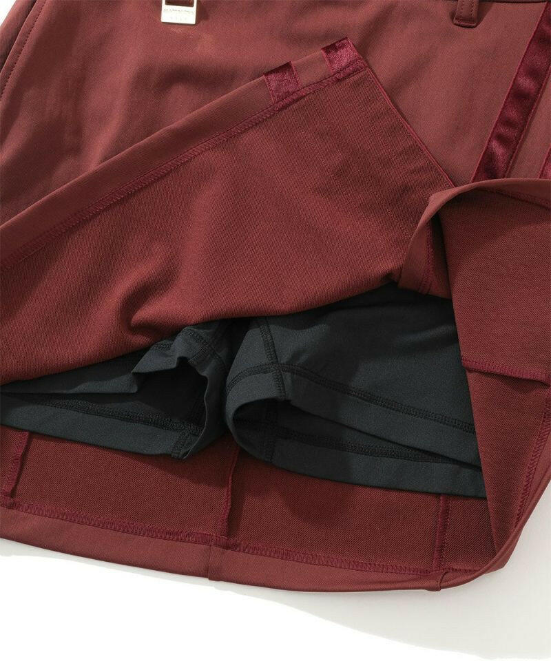 高いストレッチ性とキックバック力をもったナイロンツイル素材。滑らかな肌触りとほどよい肉感が特徴です。素材のハイストレッチ性を活かしたタイトフィットシルエット。スリット入りで、ミニ丈でも安心なインナーパンツ付き。サイド開きのウエストにはゴムインベルを採用し、耐久性、寸法安定性、着心地のよさを追求しました。裾のスリットで抜け感と動きやすさをプラスしています。