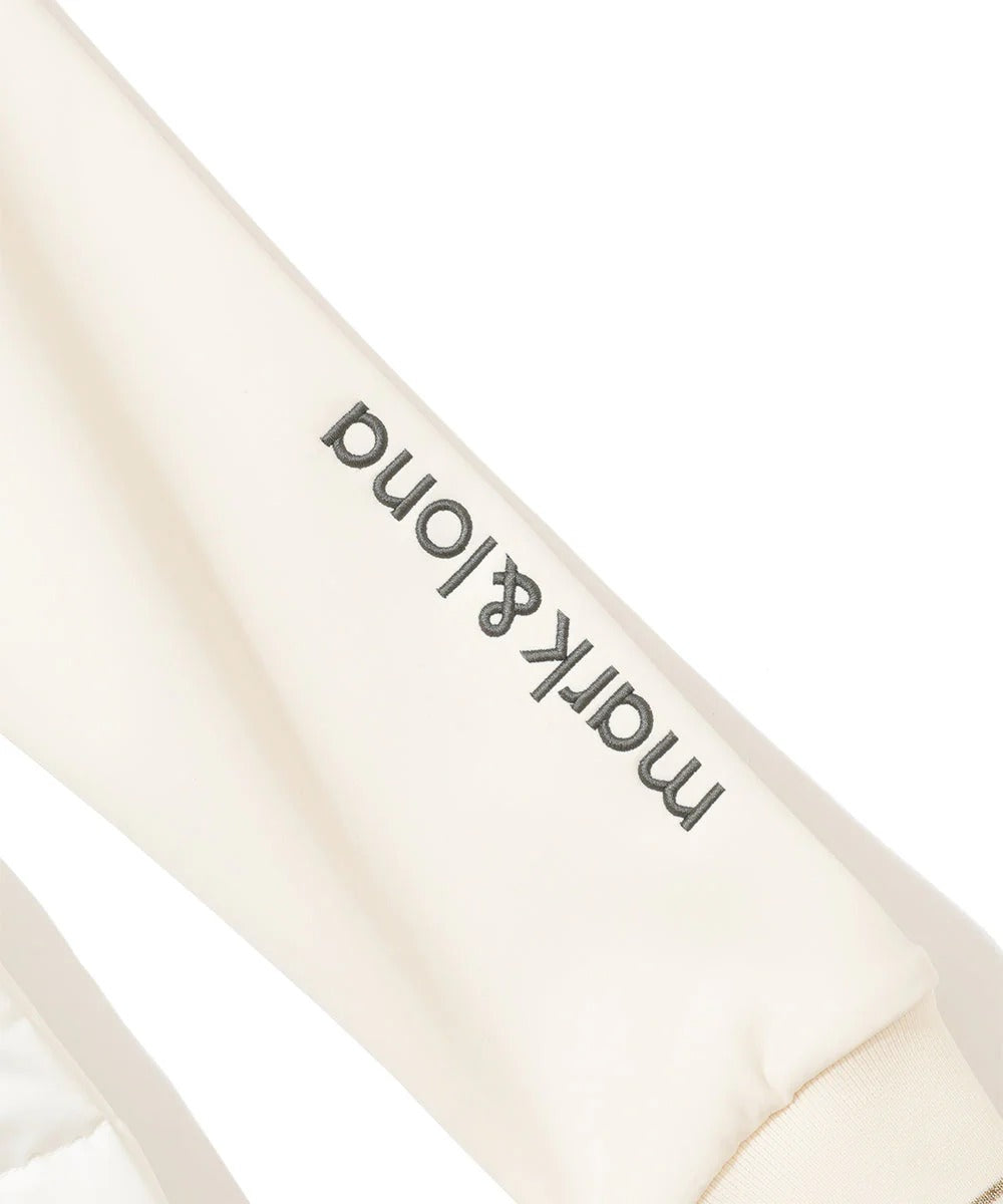 表地:ポリエステル100% 裏地:ナイロン100% 中綿:ポリエステル50%,複合繊維(ポリエステル)35%,レーヨン15% 袖:ナイロン82%,ポリウレタン18% 別布:ポリエステル93%,ポリウレタン7% リブ:ポリエステル90%,ナイロン9%,ポリウレタン1%
