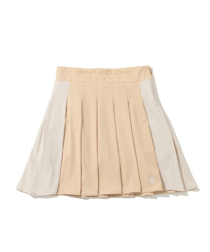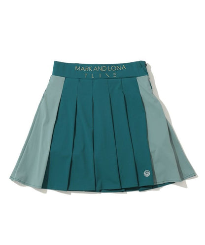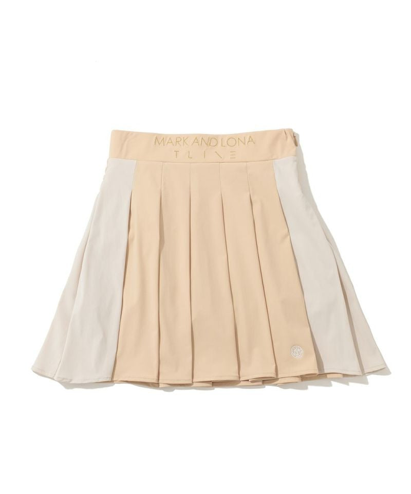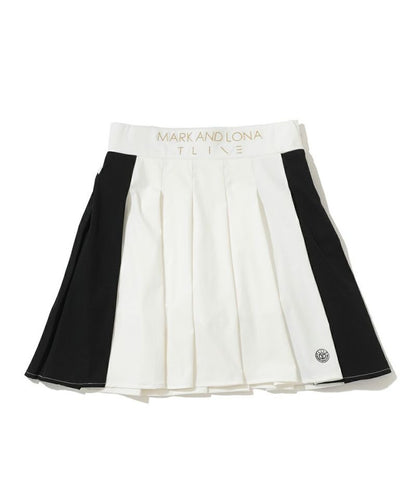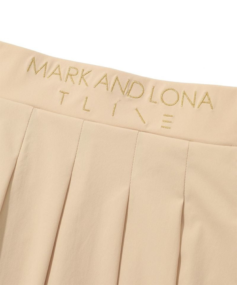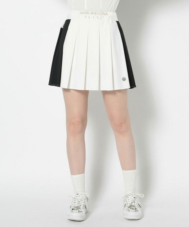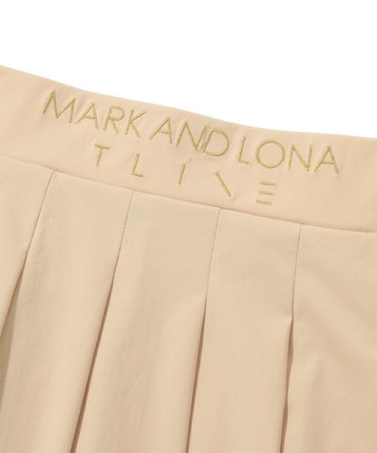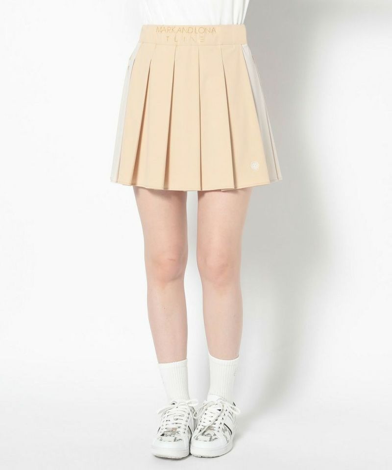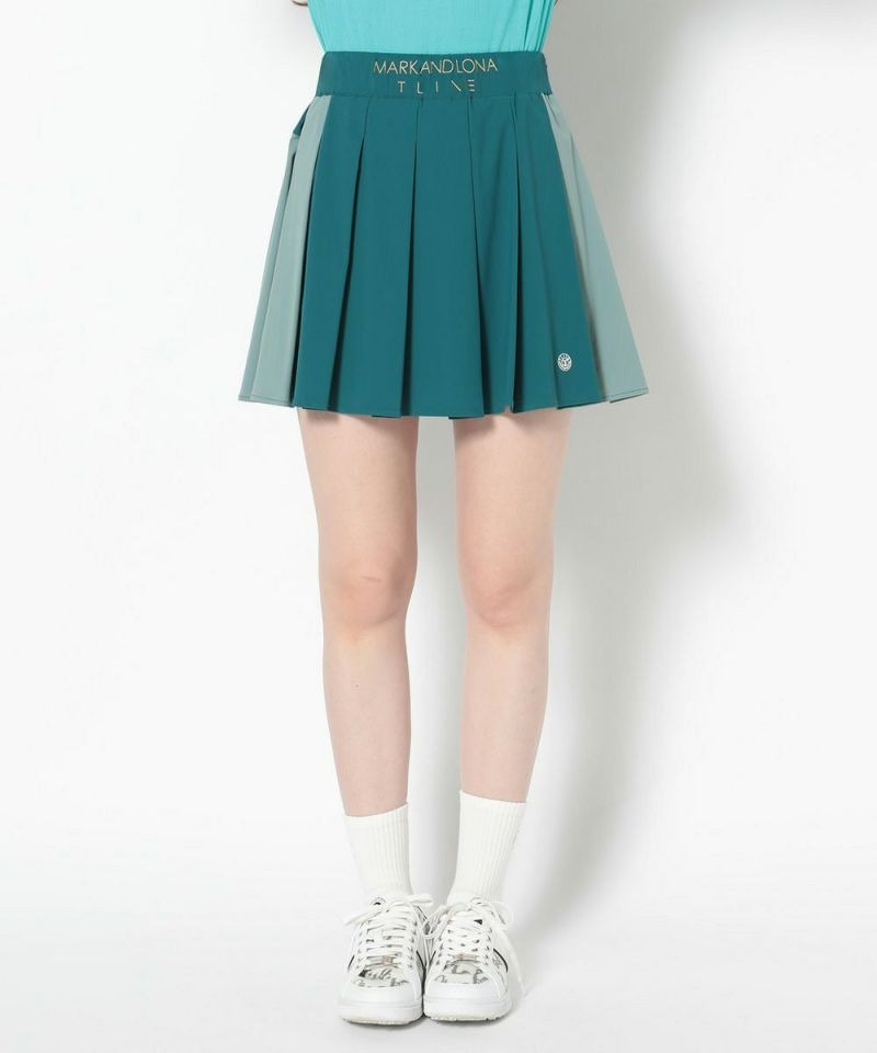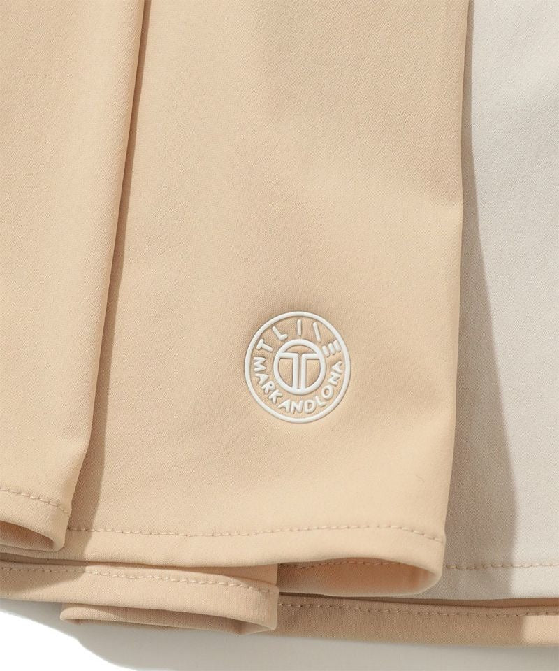 サイドのパネルが配色になったタックフレアスカート。程よいハリと滑らかな表面感が特徴のナイロンのハイゲージスムース素材を使用。ベルト巾を太めにしたハイウエストで着用時のフィット感が抜群。また裾に向かってなだらかに広がるエレガントなシルエット。前ベルト、バックのヨークにはロゴを金糸で刺繍した繊細なディテールがポイント。