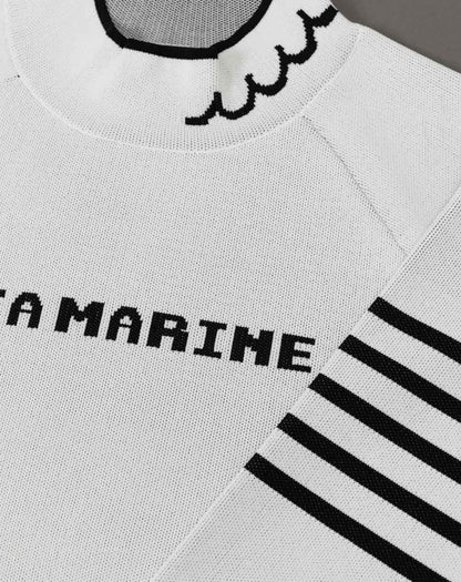 ラインが映えるスポーティーな雰囲気が魅力のジャガード織りプルオーバー。優れた伸縮性と型崩れしにくいハリ感を兼ね備えたジャガードニットを使用し、少し短めの着丈とすっきりとしたシルエットが女性らしいエレガントさを演出します。ネック部分にはロゴが施され、細かいディテールもポイント。タウンユースからゴルフなどのスポーツシーンまで幅広く使える一枚です。