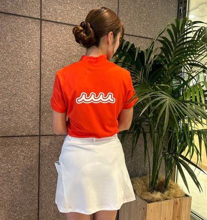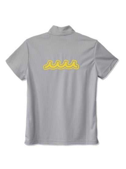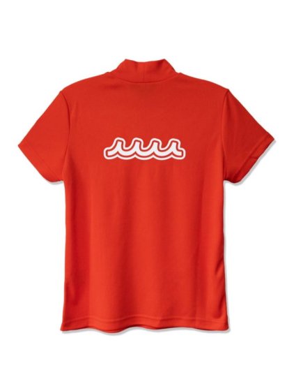 ワンポイントのロゴ配色がシンプルながら存在感のあるモックネックシャツ。