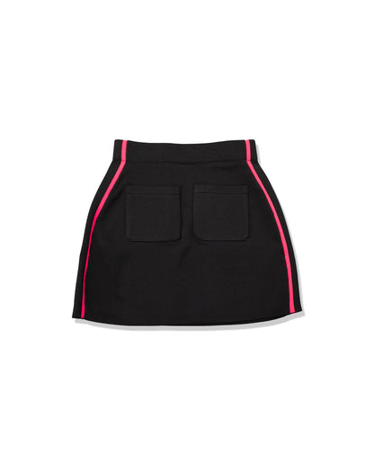 このジャガードスカートは、ラインが映えるスポーティーな雰囲気が漂う一枚です。凝ったジャガード織りのニット素材を使用しており、伸縮性に優れながらも型崩れしにくいハリ感を持ち、ラグジュアリーなスポーツMIXスタイルを提案しています。