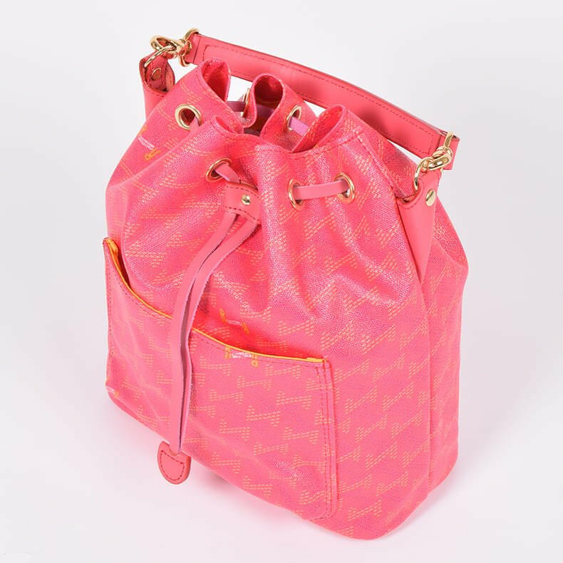 革紐を締めることによって生まれる豊かなプリーツがなんとも優雅でクラシカル。トートバッグタイプにはない魅力です。