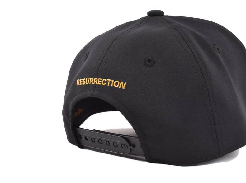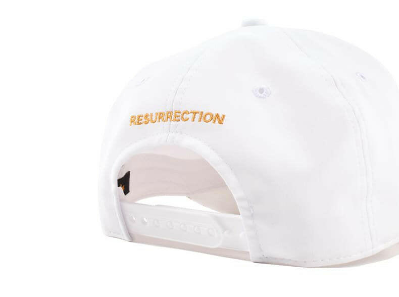 3D刺繍の「RR」ロゴはそのままに、上下に「resurrection」のフラット刺繍を組み合わせ新鮮な表情に。