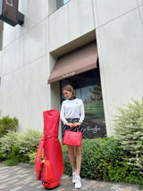 今回はボディにアクセントとなる合皮を使わず、思いきってすべてを幾何学模様の生地にチェンジ。よりブランド感を主張したデザインに。