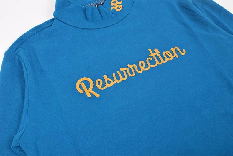 今回のデザインは胸元にチェーンステッチでブランドロゴを表現したデザイン。