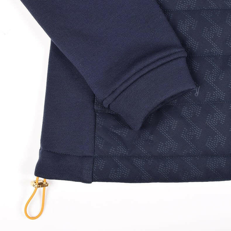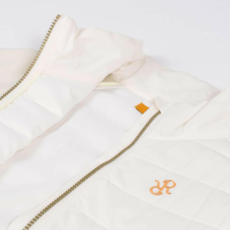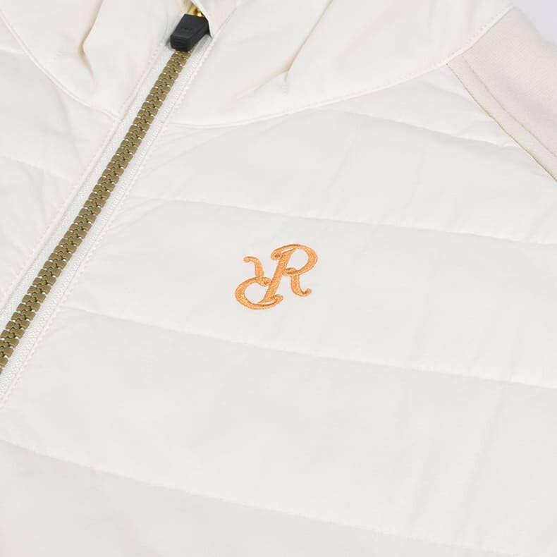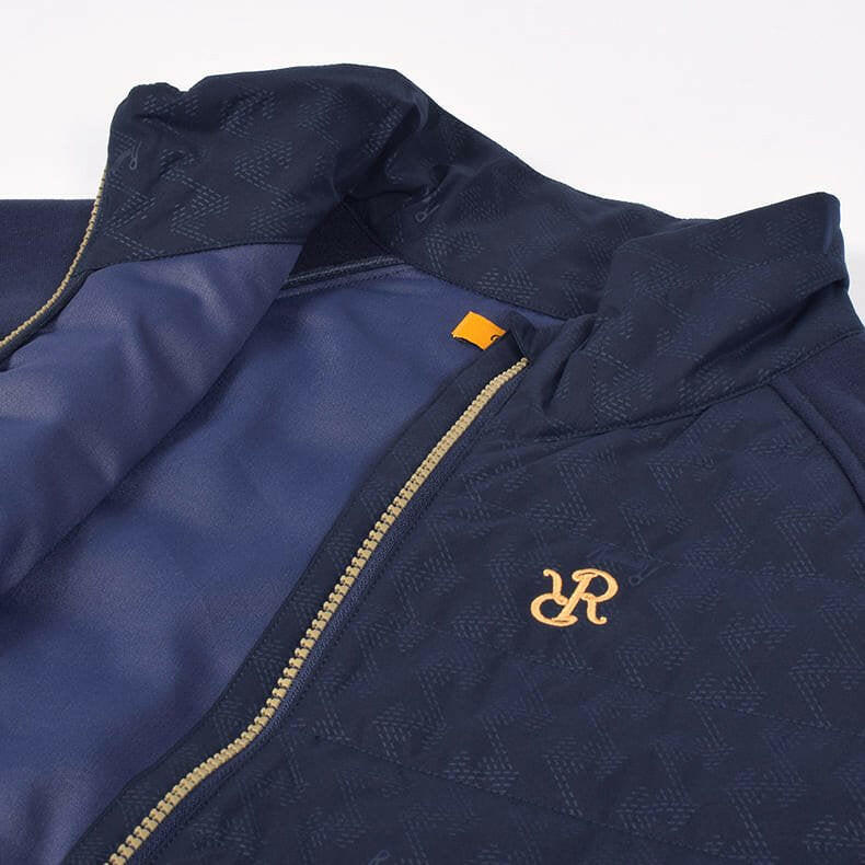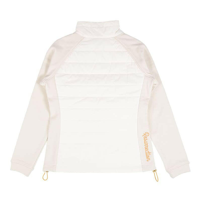 ”着用したままプレーができる”をコンセプトにしているレザレクションのアウター。「動きやすさ」にもこだわりを散りばめています。スイングする際に重要となってくる袖部分。可動域の広いラグラン仕様で"ひっかかり”を極力抑えました。そして、肩から袖、脇下部分に異素材の生地で大胆な切り返し。見た目にも普通過ぎないポイントになっています。こちらの生地は、『ウォームパーカー』や『ウォームロングパンツ』で使用している高機能生地”デュアルウォーム”。ストレッチ性が高く、裏起毛が暖かいモチモチとした生地感なのでノンストレス。発熱+保温性もあるんです。