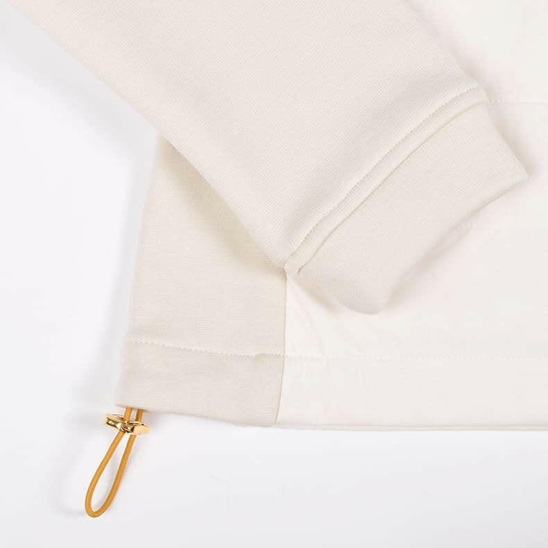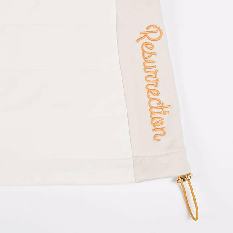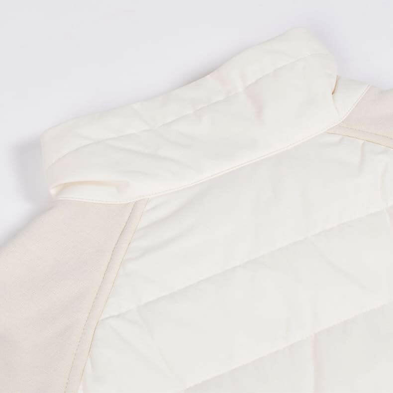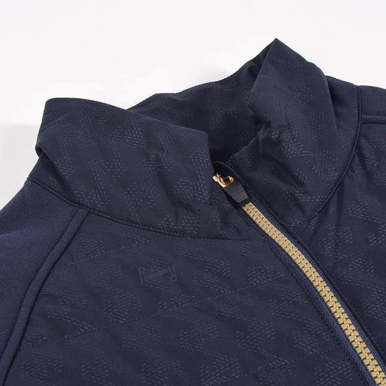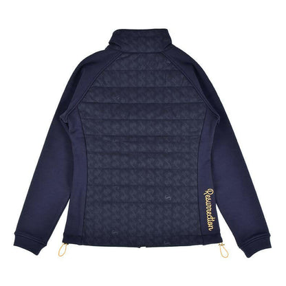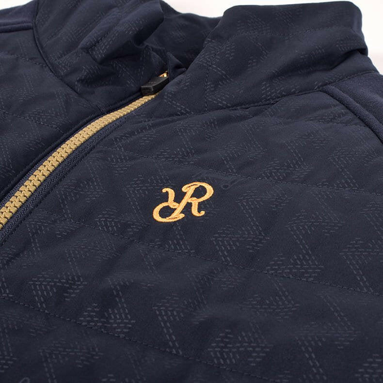 ”着用したままプレーができる”をコンセプトにしているレザレクションのアウター。「動きやすさ」にもこだわりを散りばめています。スイングする際に重要となってくる袖部分。可動域の広いラグラン仕様で"ひっかかり”を極力抑えました。そして、肩から袖、脇下部分に異素材の生地で大胆な切り返し。見た目にも普通過ぎないポイントになっています。こちらの生地は、『ウォームパーカー』や『ウォームロングパンツ』で使用している高機能生地”デュアルウォーム”。ストレッチ性が高く、裏起毛が暖かいモチモチとした生地感なのでノンストレス。発熱+保温性もあるんです。