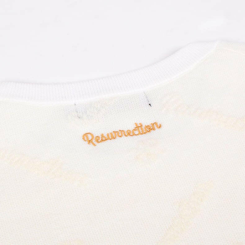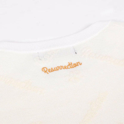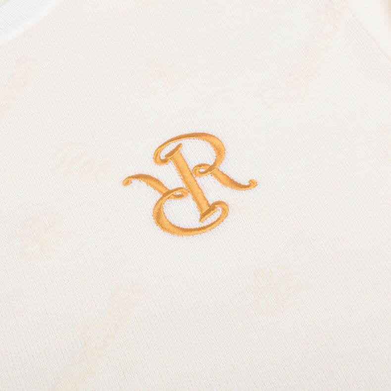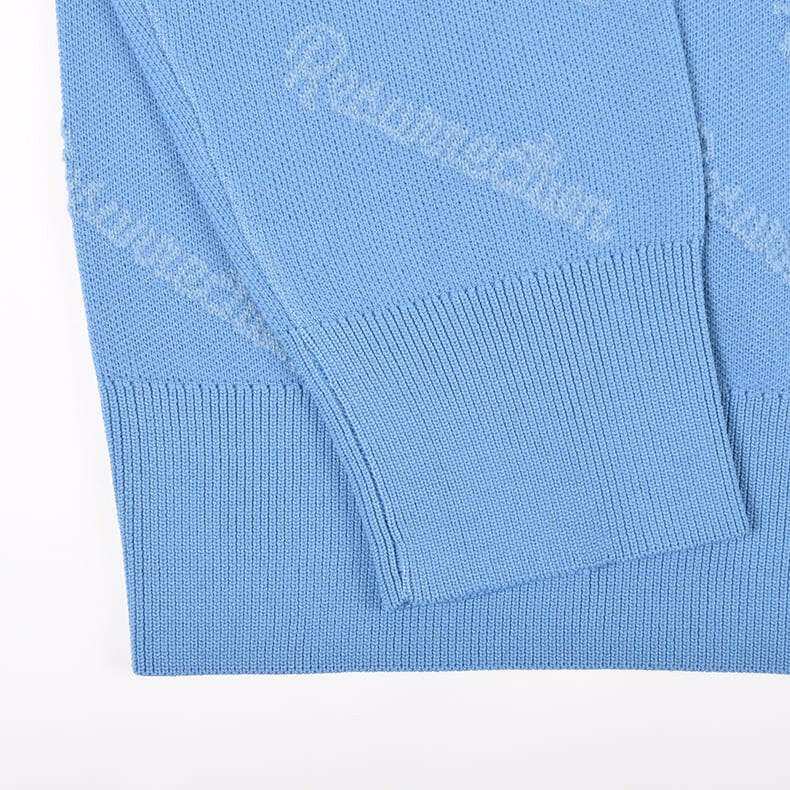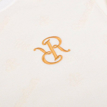 同じデザインの”モノグラムロゴモックネック”ではカジュアルな印象でしたがセーターは大人っぽい印象になるようにロゴ部分をボディと同色の立体編みで表現いたしました。一見シンプル見えするデザインながら、さりげなくブランド感を表現。左胸には、RRロゴをゴールドの刺繍が高級感を演出します。もう少し寒くなってきた時には、今シーズンレザレクションがご提案しているベストとのコーディネートがオススメ。ボアベストや、これからリリースされるダウンベストなどと同色系のスタイリングを組んで頂ければ立体編みで表現したモノグラムロゴデザインが程よいアクセントになりますよ。