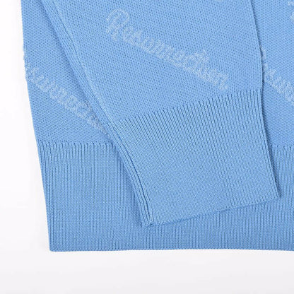 定番の「ホワイト」、そして、メンズ限定色の「ブルー」。今シーズンはパンツ、トップスでネイビーのアイテムを推していますが相性抜群なんです。ニットが豊作な今シーズンのコレクションの中でも一番軽さを感じて頂けるアイテム。新鮮なテクニックで表現されたさりげないロゴモノグラムはオシャレ仲間からの注目度も高くなりそうです。厚すぎず薄すぎない使い勝手の良いニットをお探しのお客様にはぴったりのセーターです。