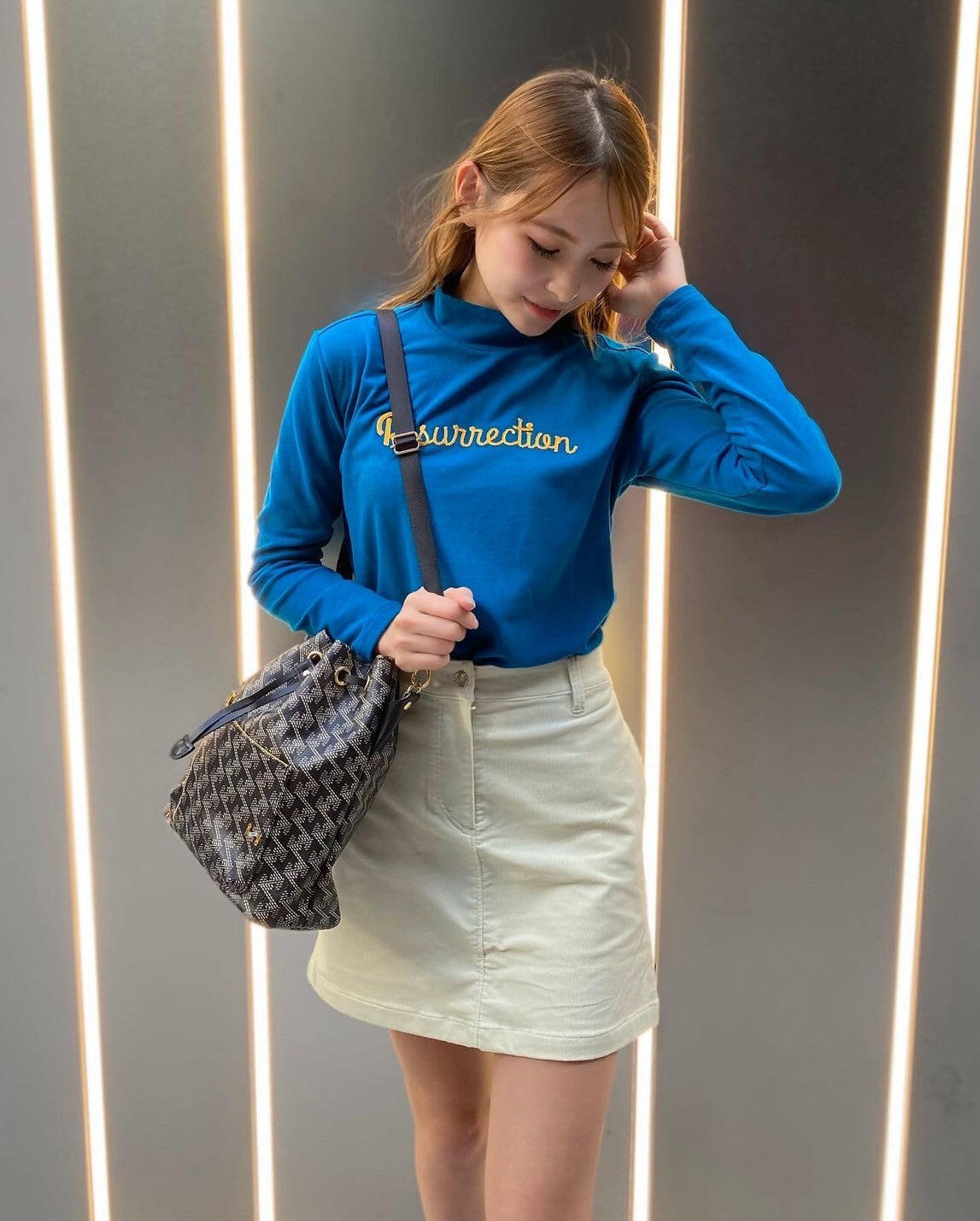 クラシカルだけれど今を感じるコーデのアクセントになる巾着型バッグ