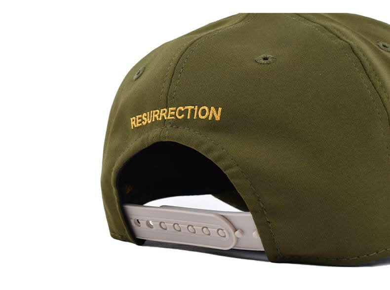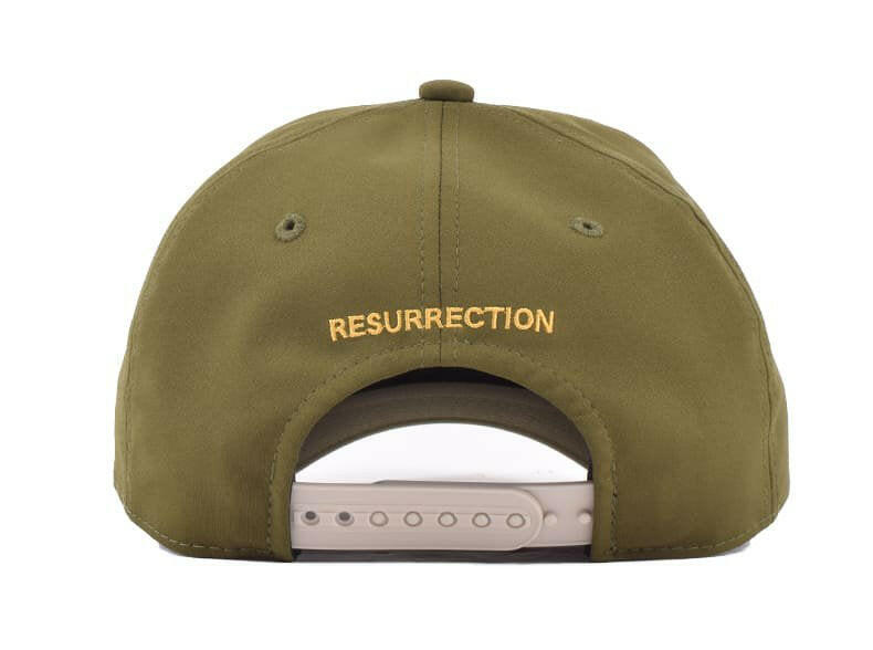 3D刺繍の「RR」ロゴはそのままに、上下に「resurrection」のフラット刺繍を組み合わせ新鮮な表情に。