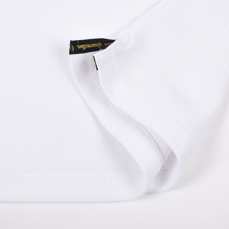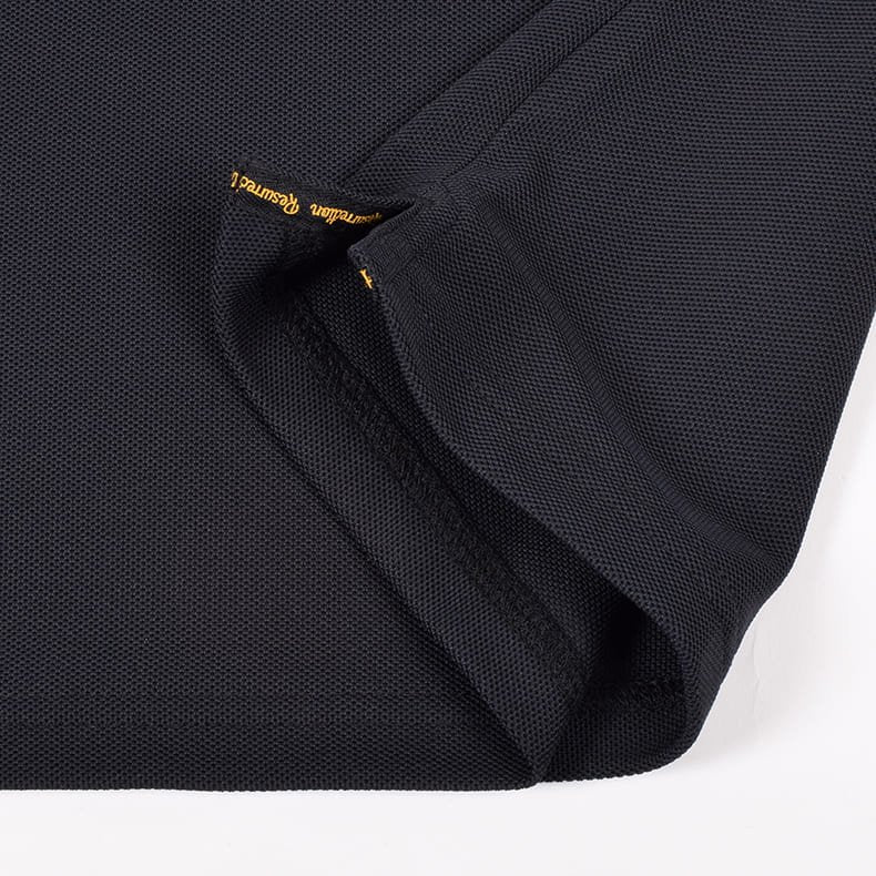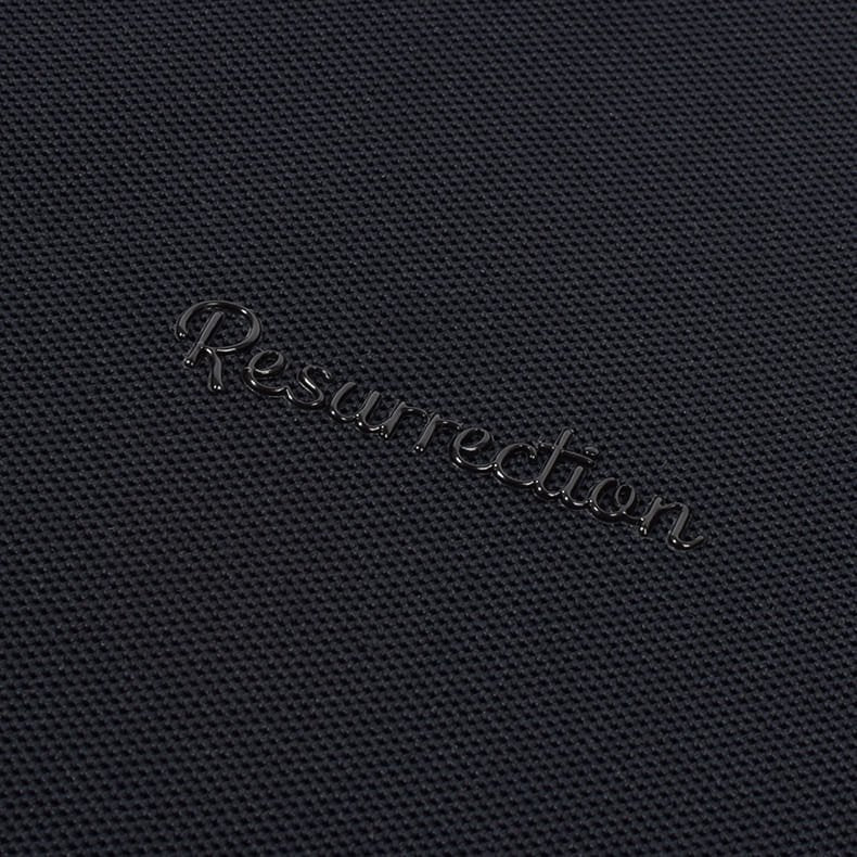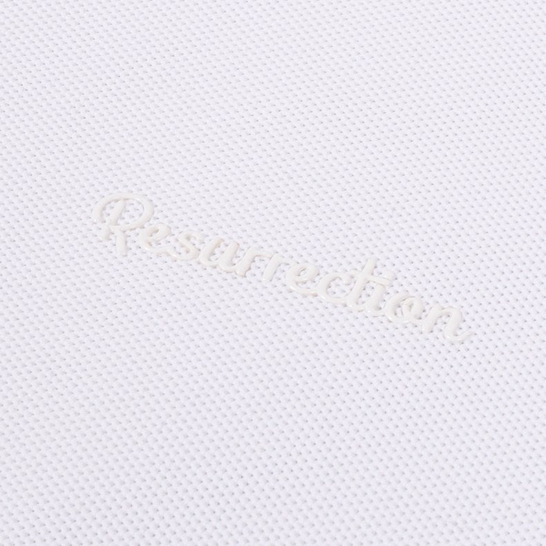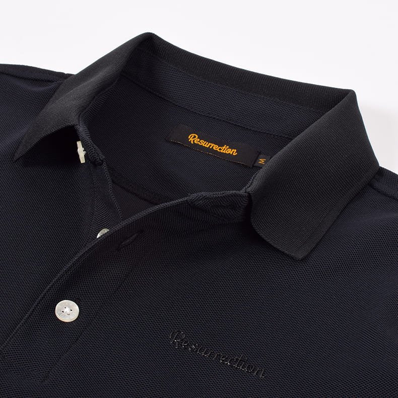 レザレクションの代名詞であるゴールドのブランドロゴに代わり、今回のポロシャツではボディと同色のロゴデザインを採用。従来のゴールドとは一線を画す新鮮な表現が話題に。立体感のある素材で仕上げたロゴは、高級感とポップな雰囲気を両立し、名門ゴルフコースやビジネスシーンでも安心して着用できるシンプルさです。