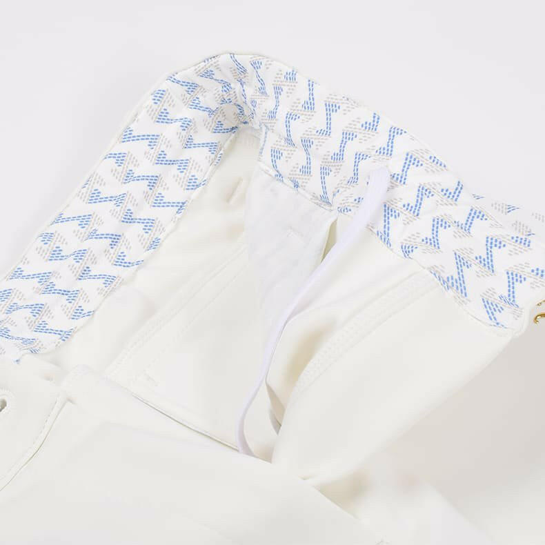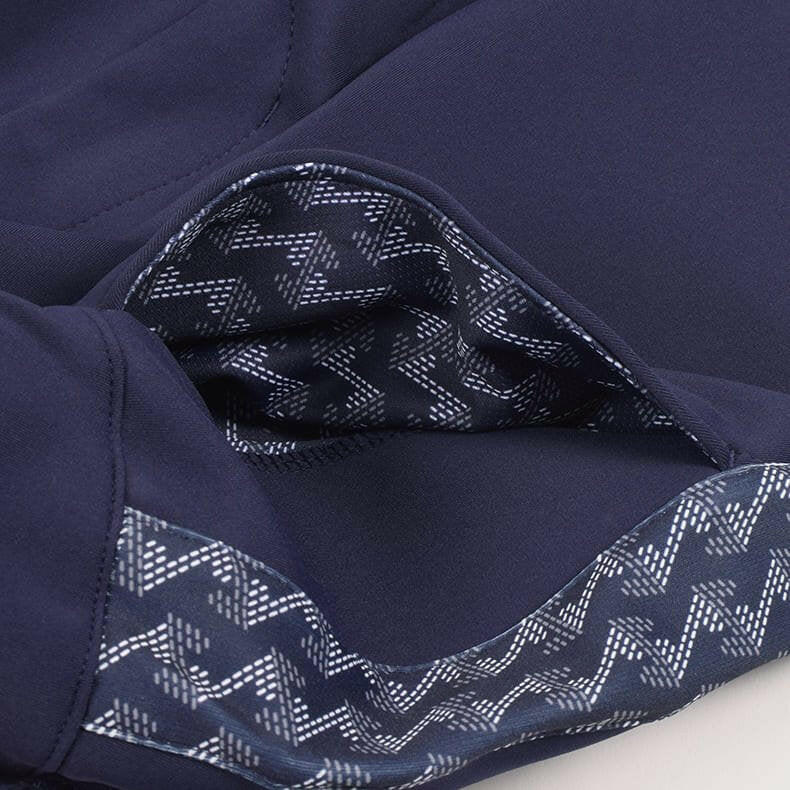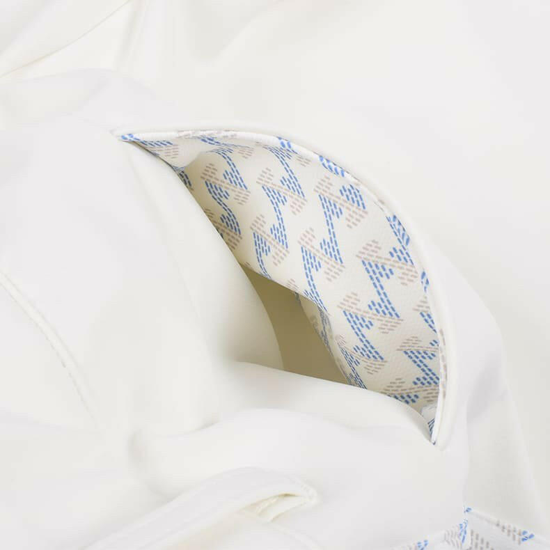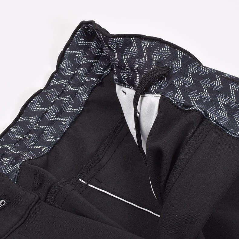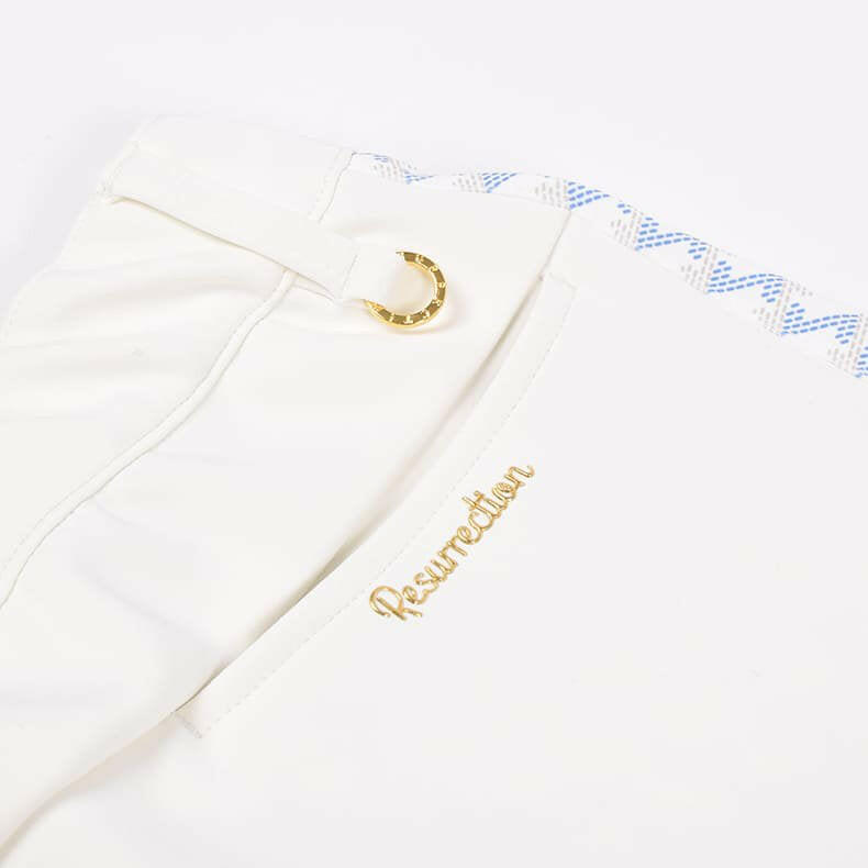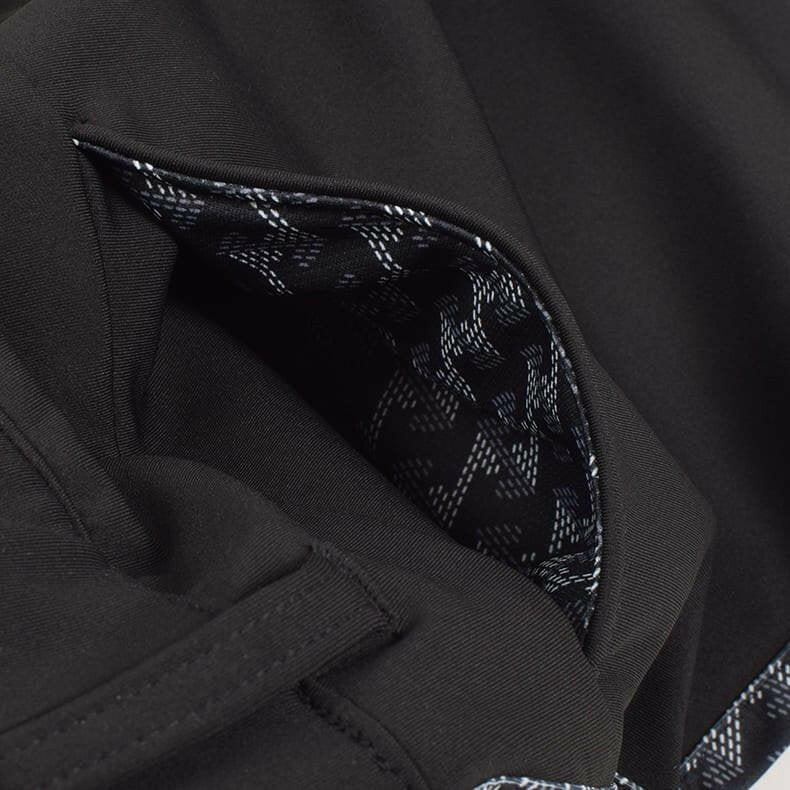 見えない部分にもこだわりを。ポケットの内生地や、腰回りの内側にレザレクションの代名詞である幾何学模様をプリントし何気ない瞬間に隙間からのぞくオシャレ感を演出。他の人には気づかれにくいけれど、自分だけが知っている特別なデザインってなんだか素敵です。脱ぎ着したとき、バッグから取り出したときに、思わずハッとすることがあるかも。毎シーズン楽しみにして頂いているレザレクションのセットアップシリーズ。今回もしっかりとレザレクションらしさを表現したパンツに仕上がりました。