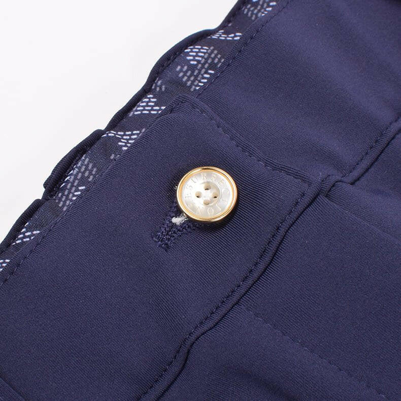お客様とお話ししていると、近年リブパンツ着用不可なゴルフ場が増えて着用できないというお声が。それならばと、今回はダンボールニット素材を採用したベーシックな形のロングパンツのお作りいたしました。