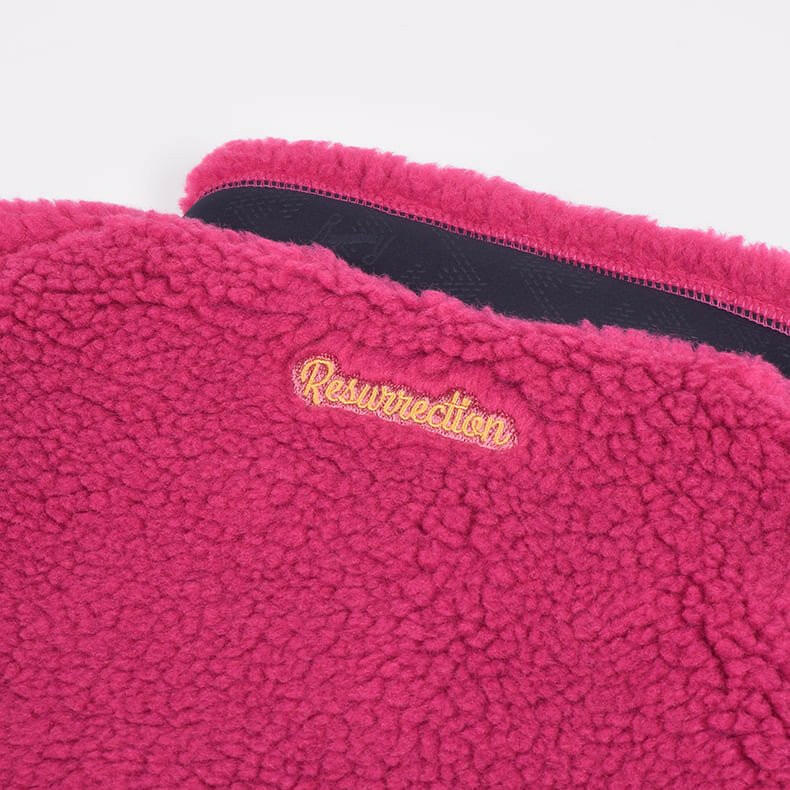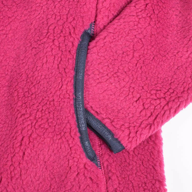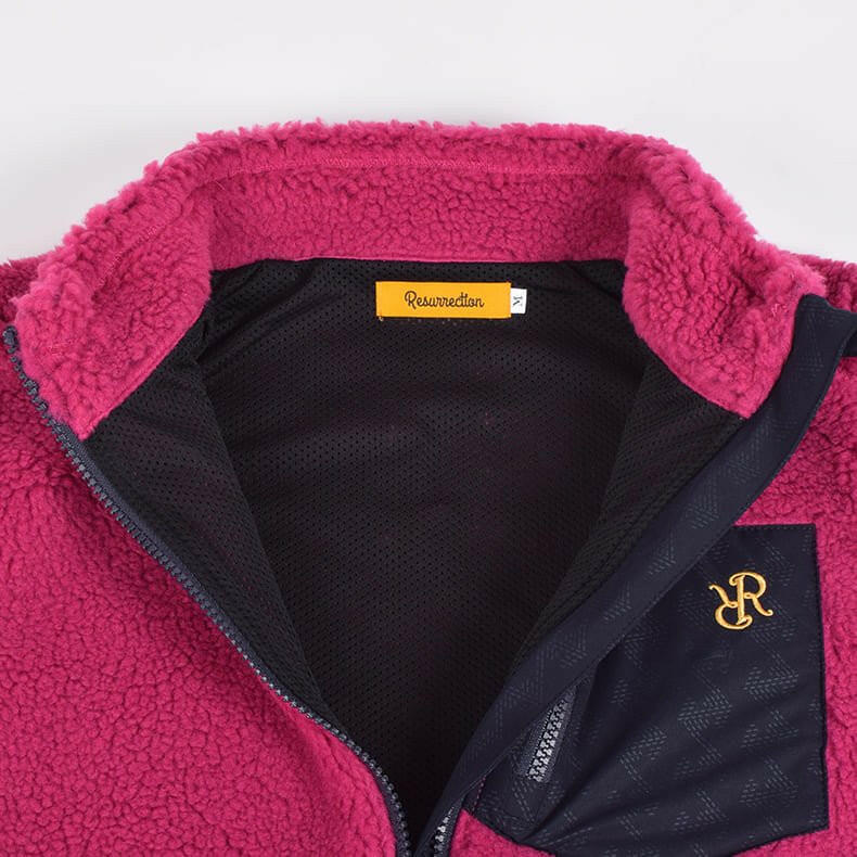 たくさんあるボア素材のなかから私たちが選んだのがイタリアの老舗生地メーカー”ベッカリー社”のファブリック。ほど良いボリューム感があってほっこりするようなぬくもり。柔らかな肌触りだけれどクタっとし過ぎない起毛感。着用した時の軽さもポイントなんです。見た目だけではなく、着用して分かるレザレクションらしい上質さを感じて頂けます。ジップを閉めれば首元からボディ部分はしっかり寒さをカバー。ベストパフォーマンスを発揮できそうなオススメアウターなんです。