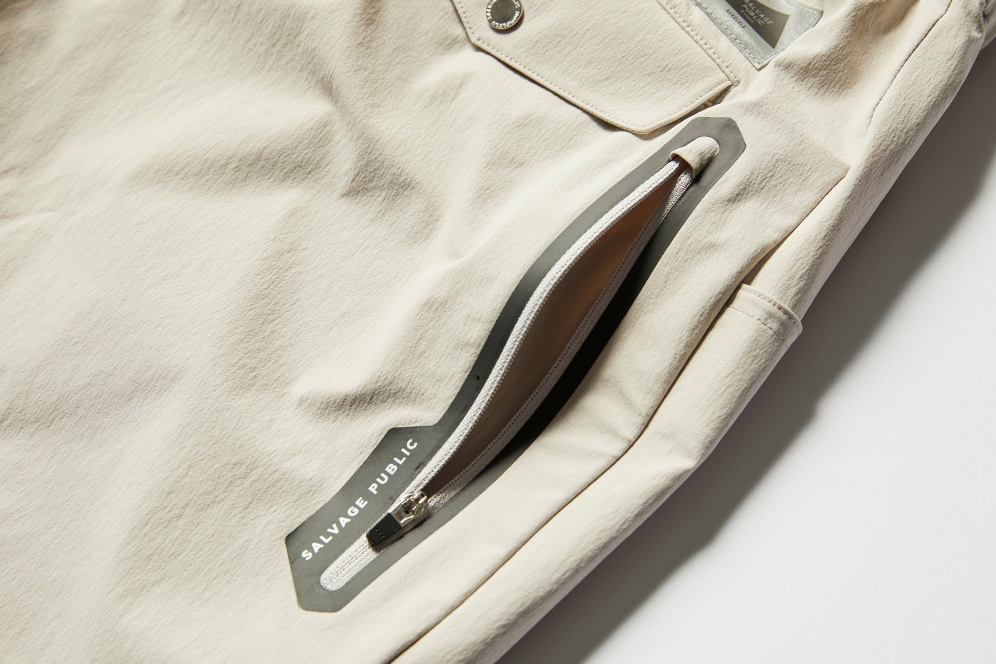 4WAYストレッチの心地良い着心地、接触冷感、撥水性も兼ね備えたナイロン素材を採用。