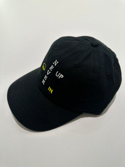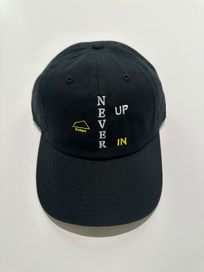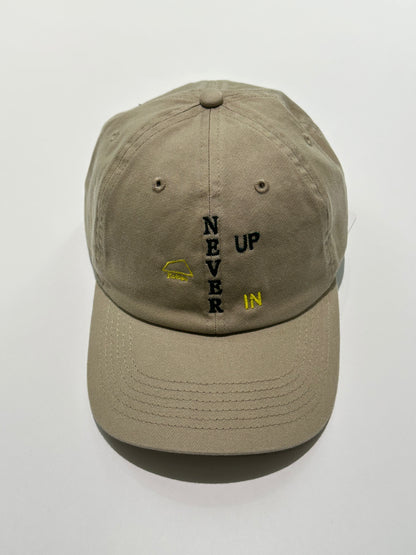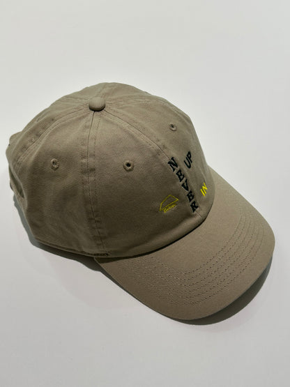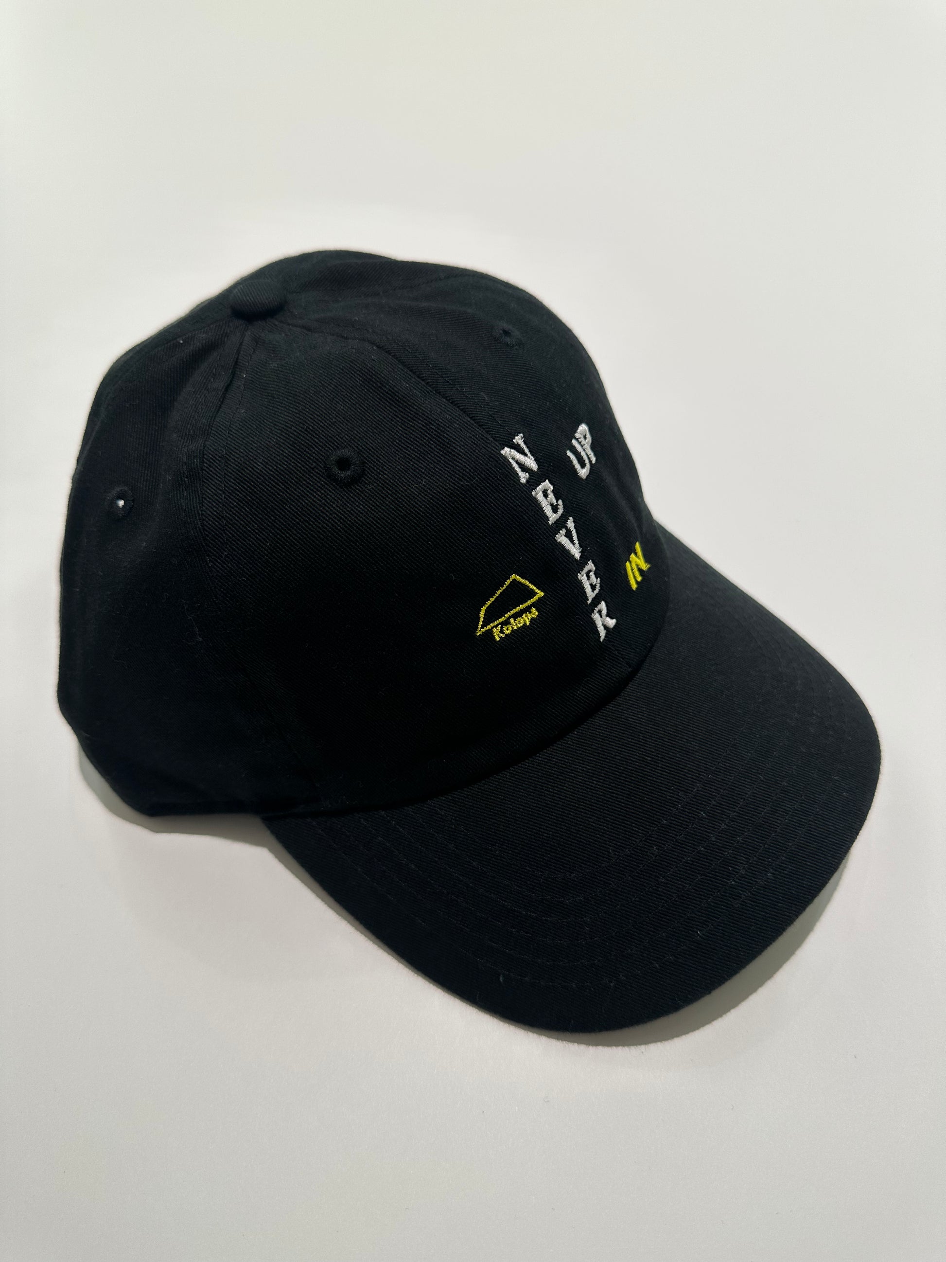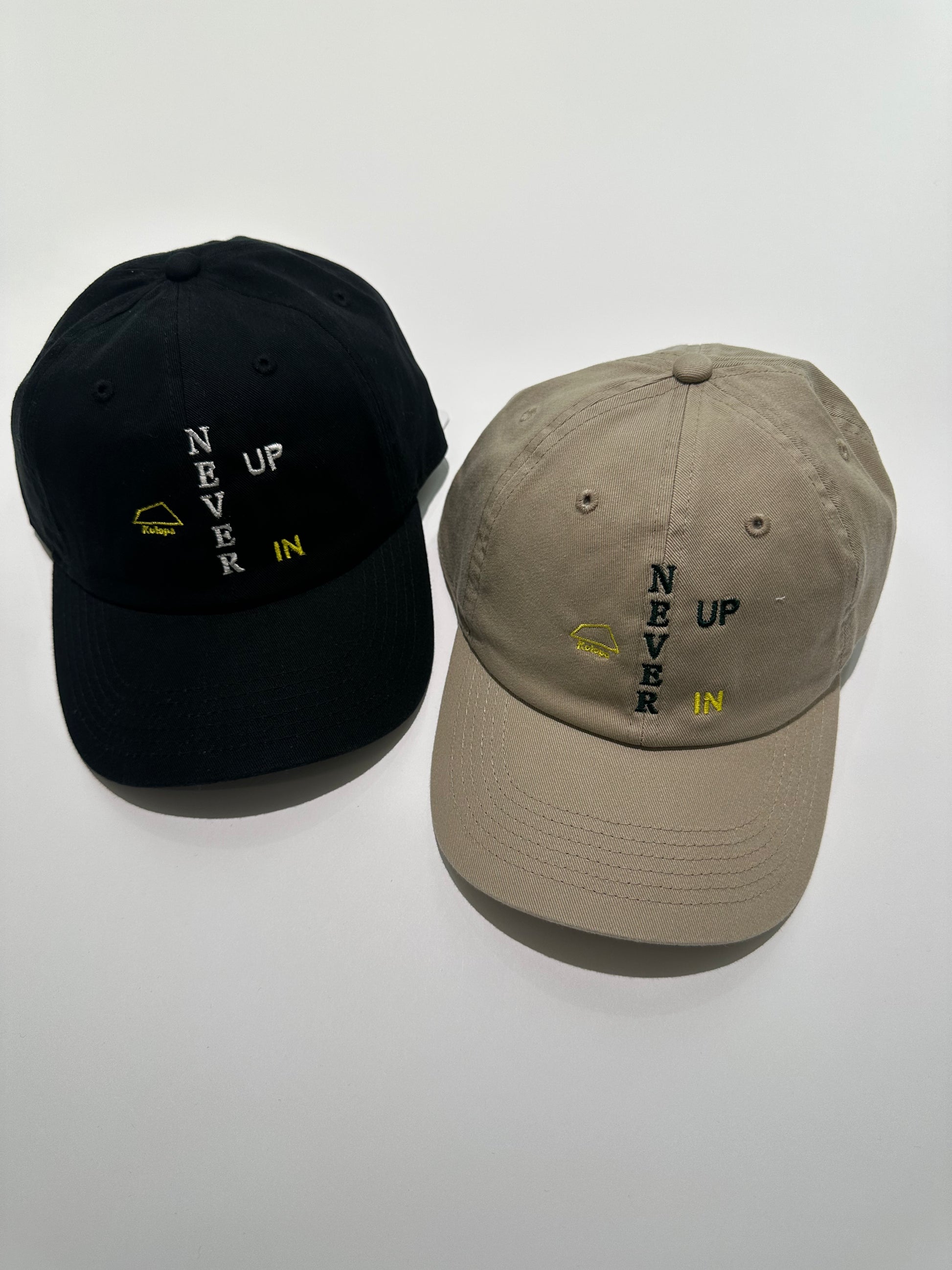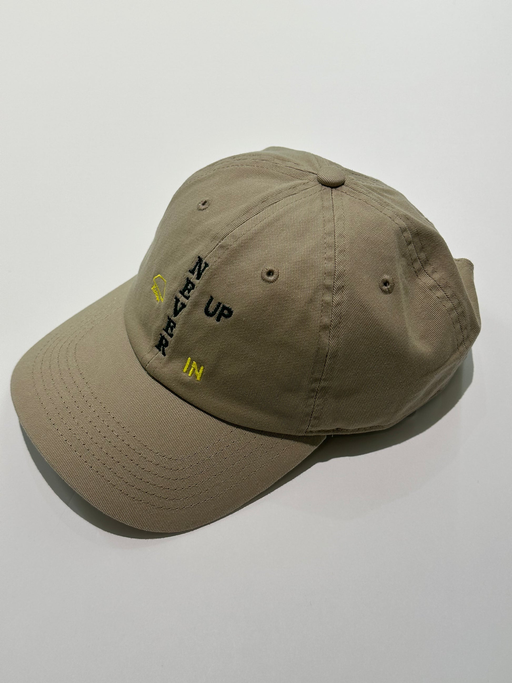 フロントにはNever Up Never In/届かなければ入らない のメッセージを刺繍。