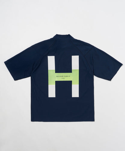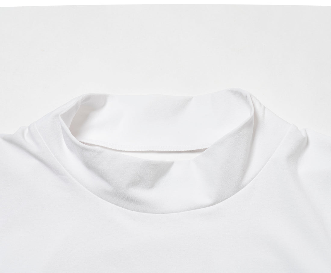 ラッシュガードとしても着用される水陸両用のストレッチ、吸水速乾、UVカットの高機能モックネックTee。