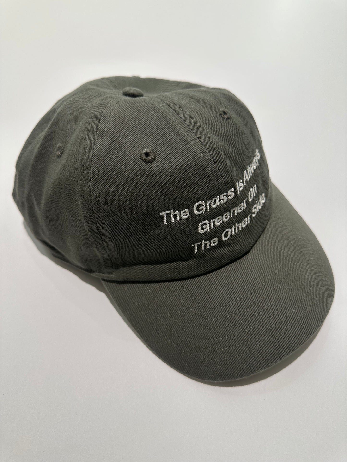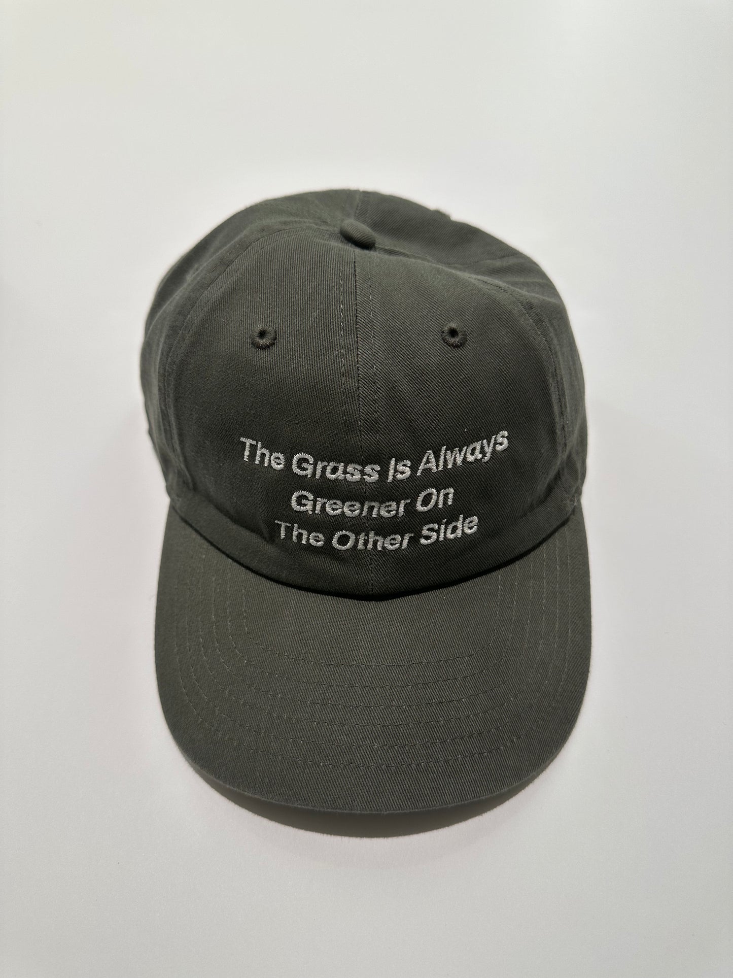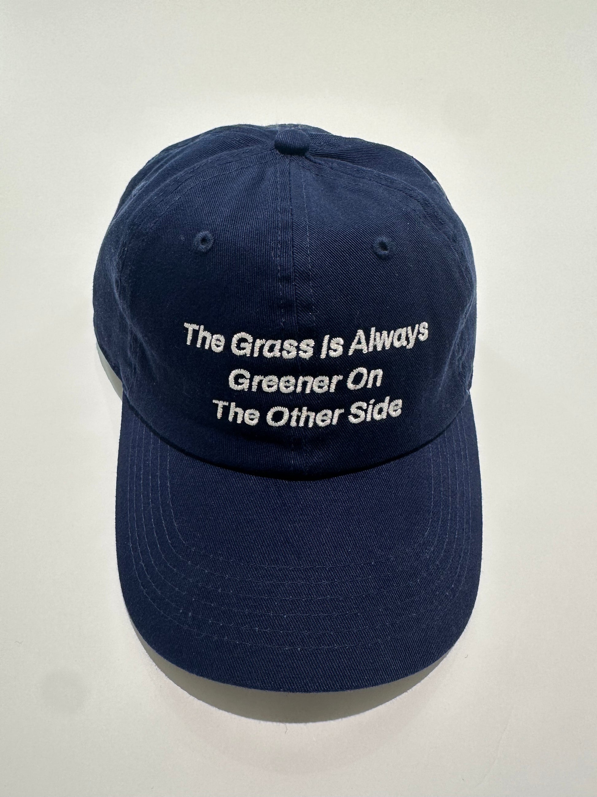 フロントには『The Grass is Always Greener On The Other Side/隣の芝は青い』という格言を刺繍している。