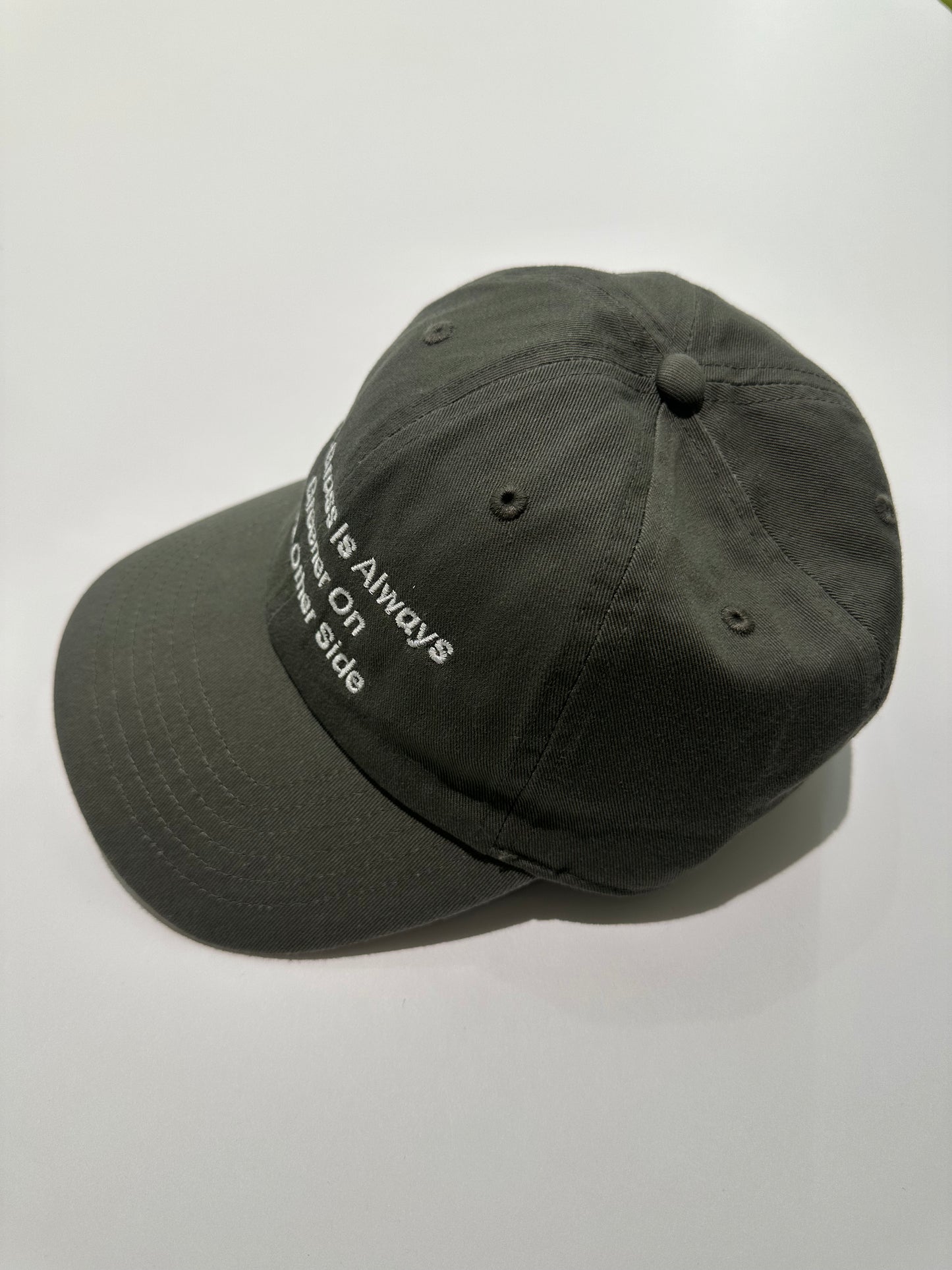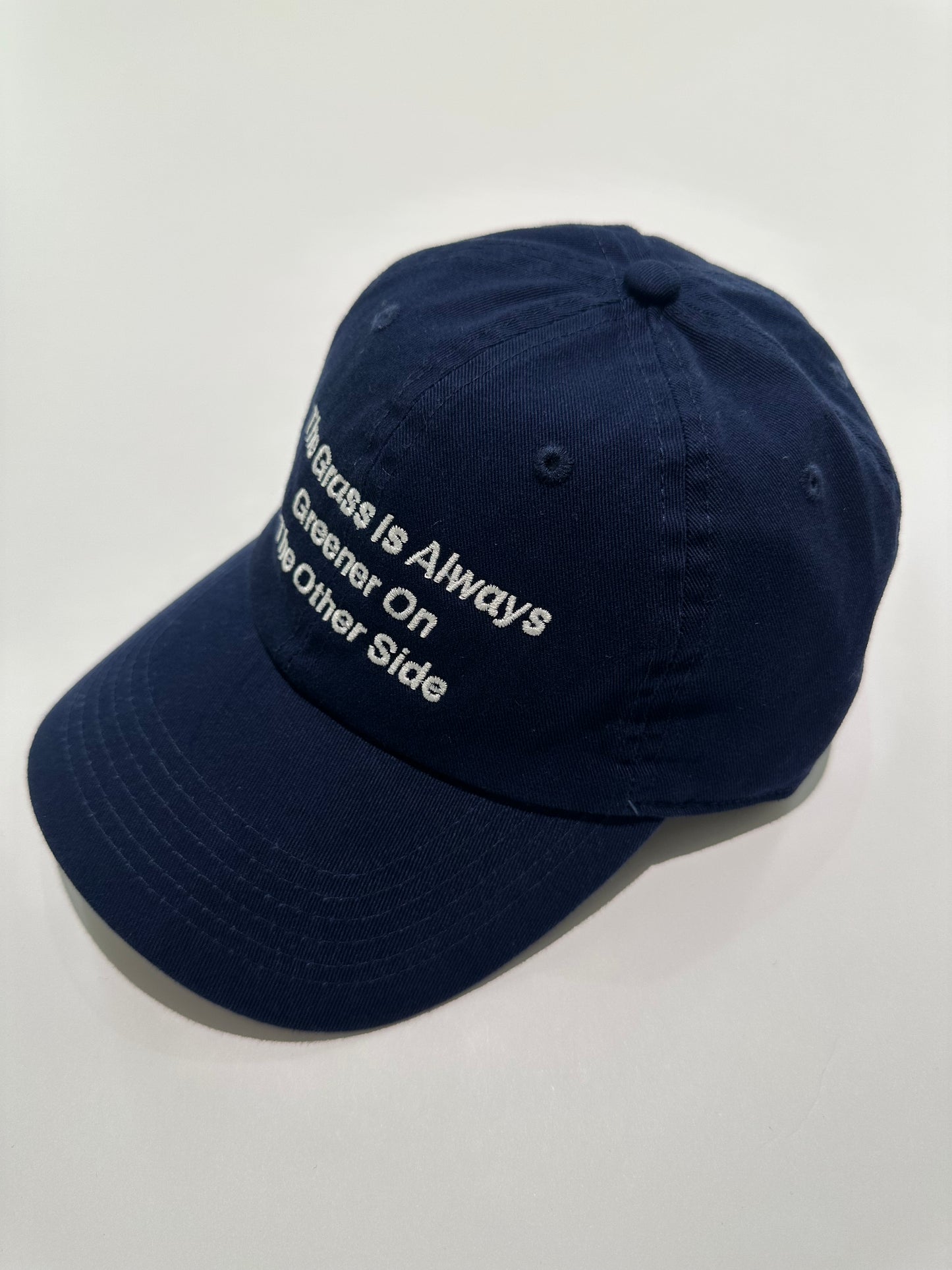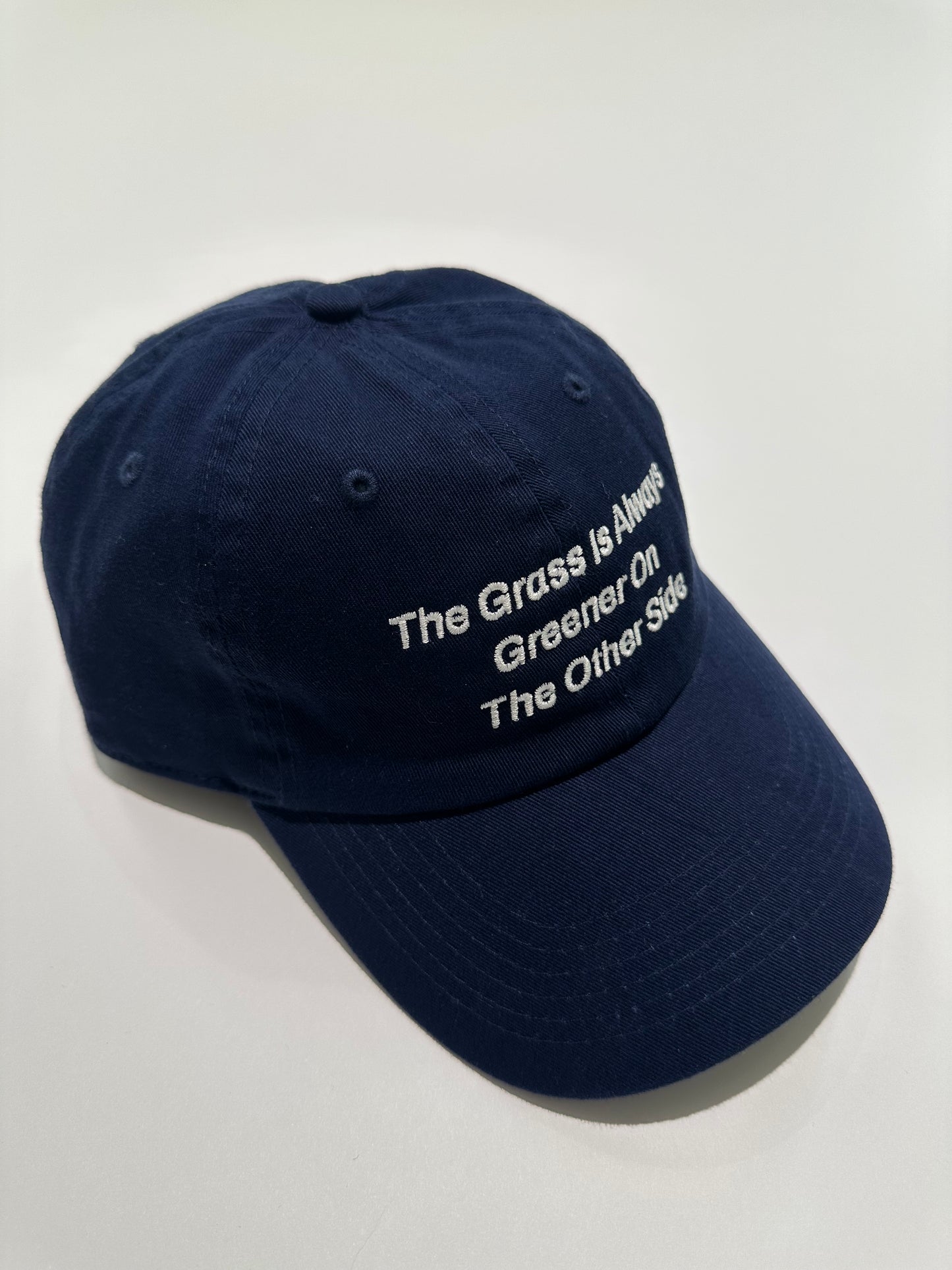 フロントには『The Grass is Always Greener On The Other Side/隣の芝は青い』という格言を刺繍している。