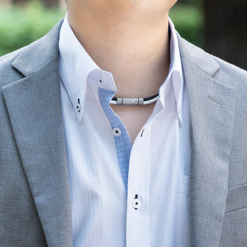 SEV健康・スポーツ用製品の中で人気No.1の「SEVルーパー」に、肌へ直接触れることも多いアタッチメント部分を、高強度素材「チタン」へ変更したタイプが誕生しました。より落ち着いた印象のチタン素材が胸元を上品に飾ります。