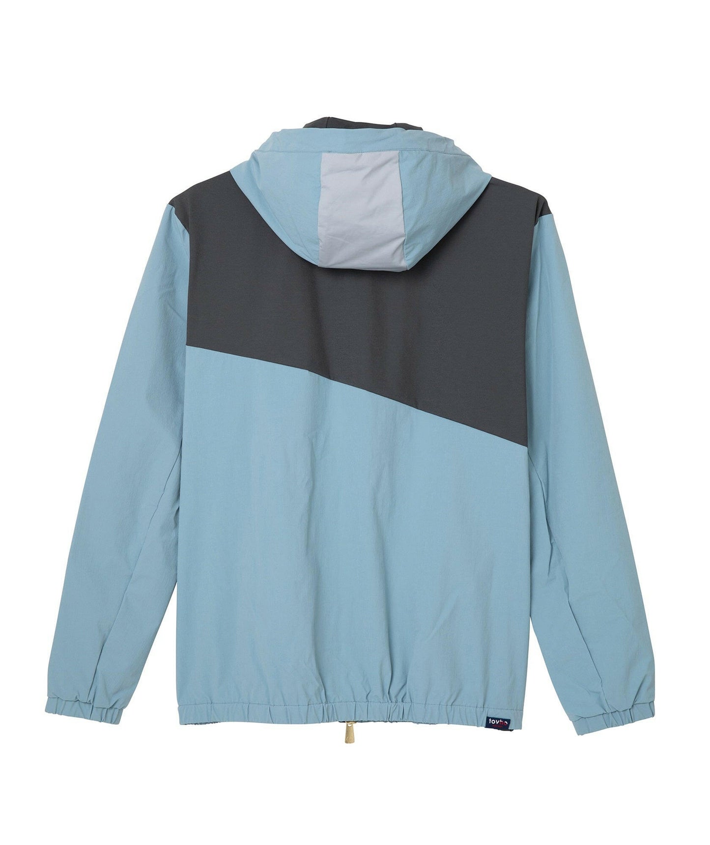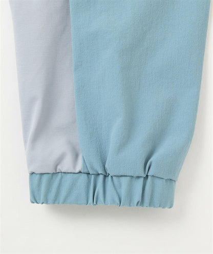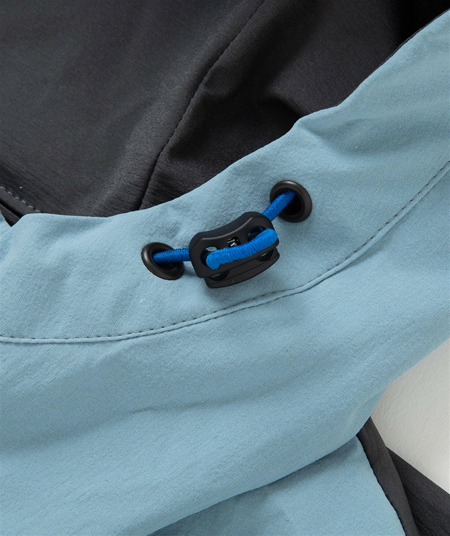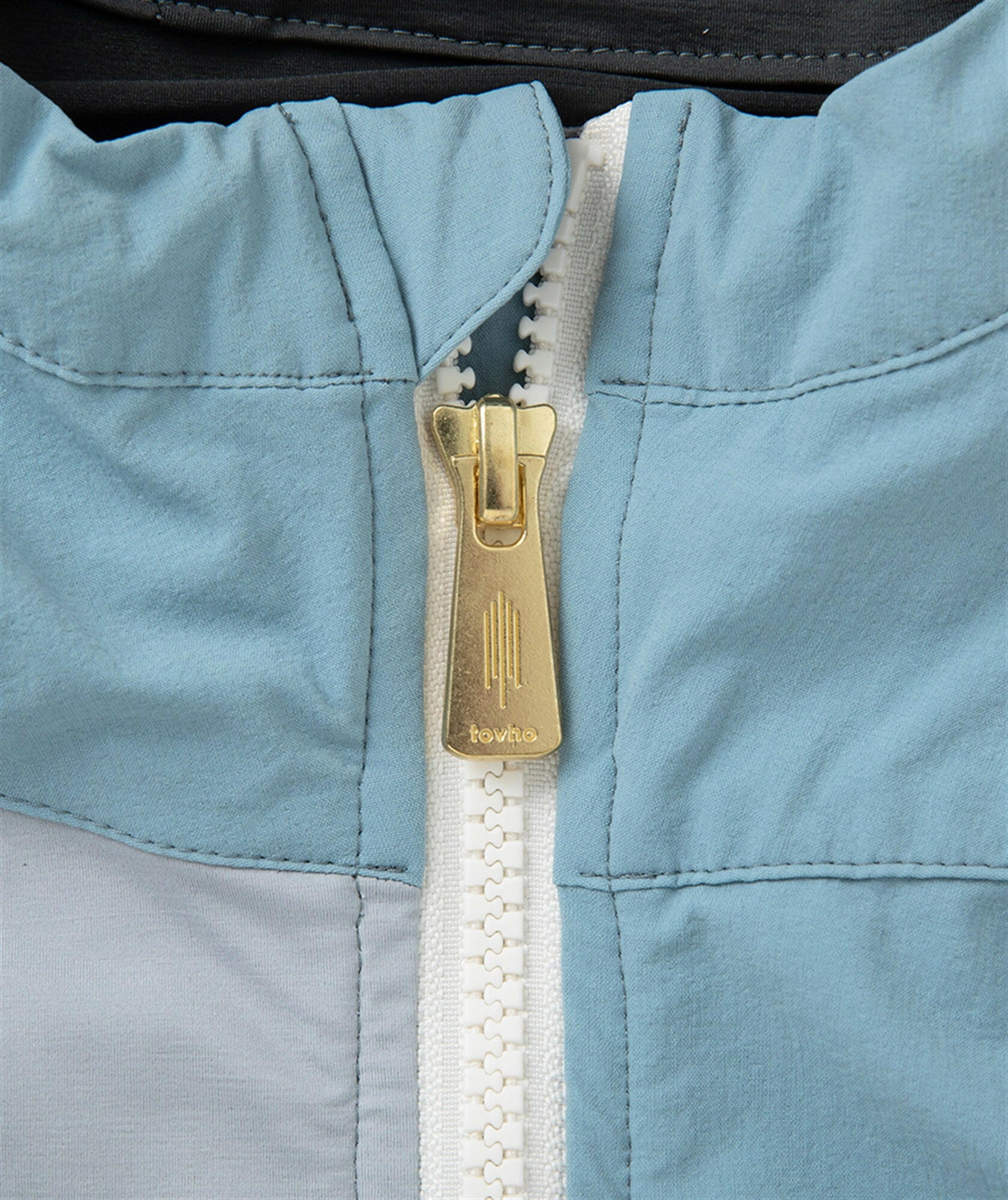 特殊編み機で仕上げられており、繊細な光沢感とジャージとは思えない表面感、さらに着用時の軽量感はこの素材ならではです。さらには撥水機能も完備しているため様々なシーンで着用できます。アシメトリーに配置されたカッティングデザインもポイントの1つです。