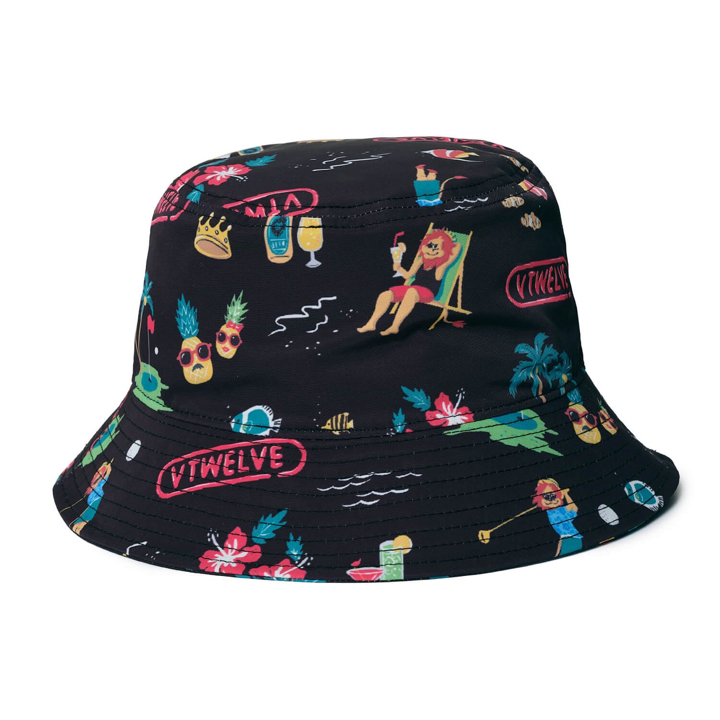 テーマに沿ってオリジナルで描き下ろしたリゾート感溢れるイラストを散りばめた総柄バケットハット。リゾート気分を盛り上げてくれる夏のマストアイテムです。