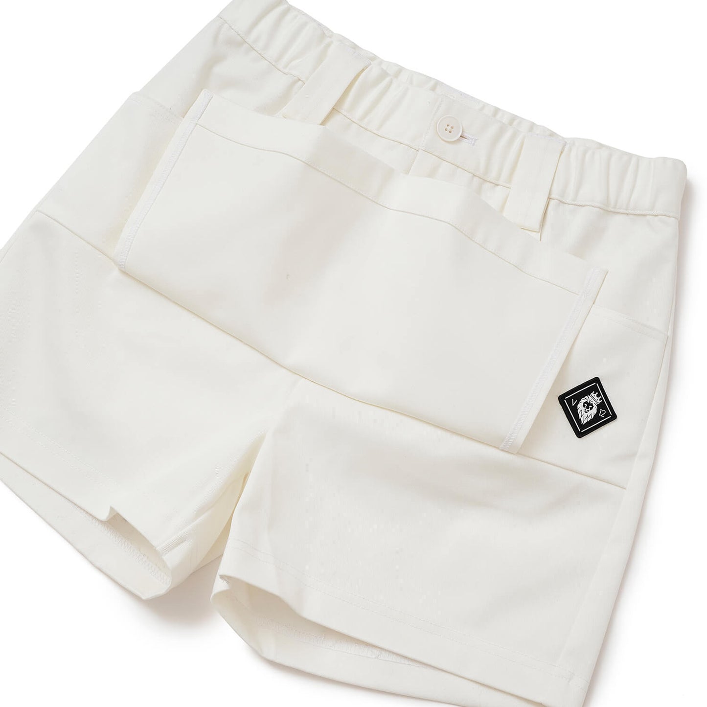 フロントからはスカート、バックからはパンツに見える二面性のあるデザイン。