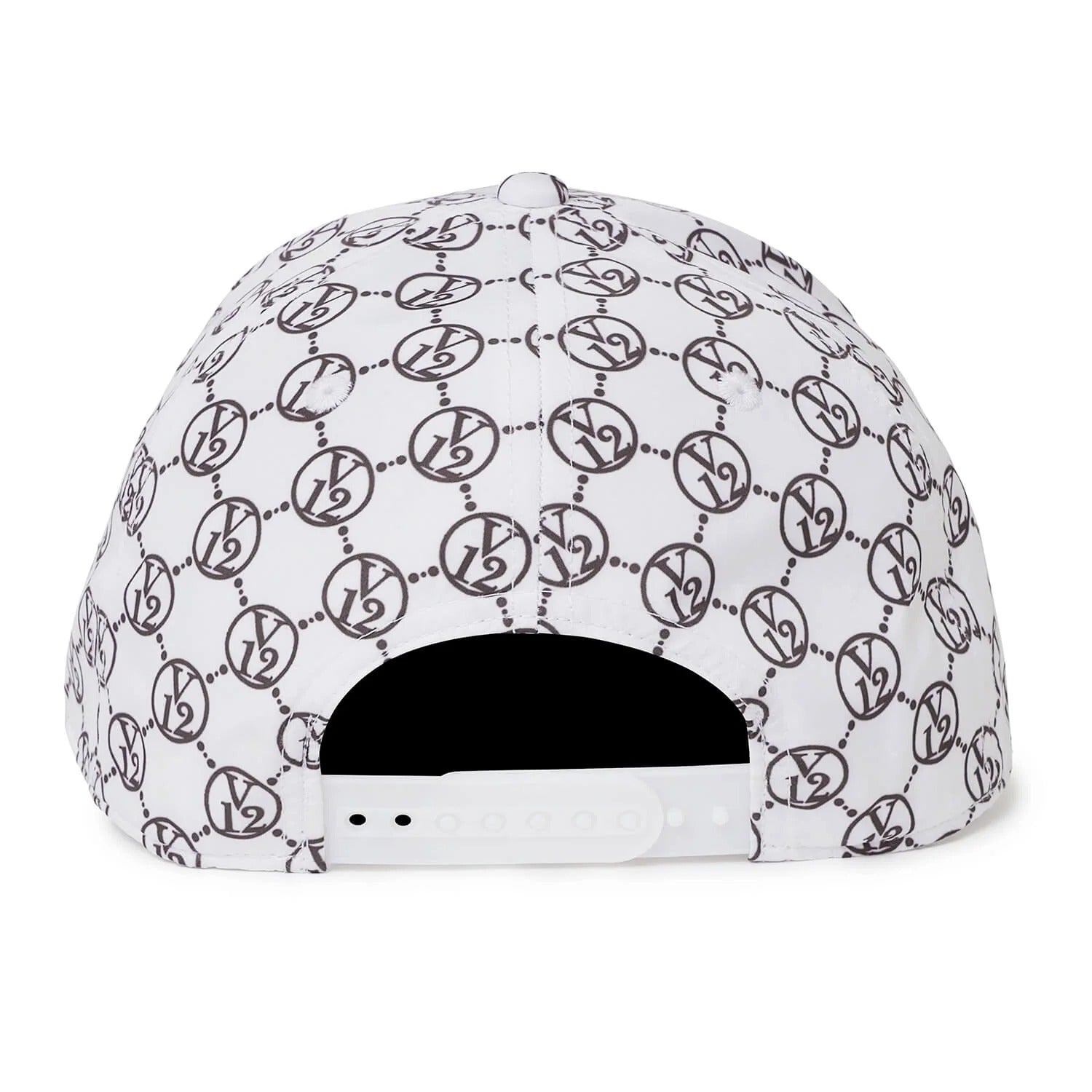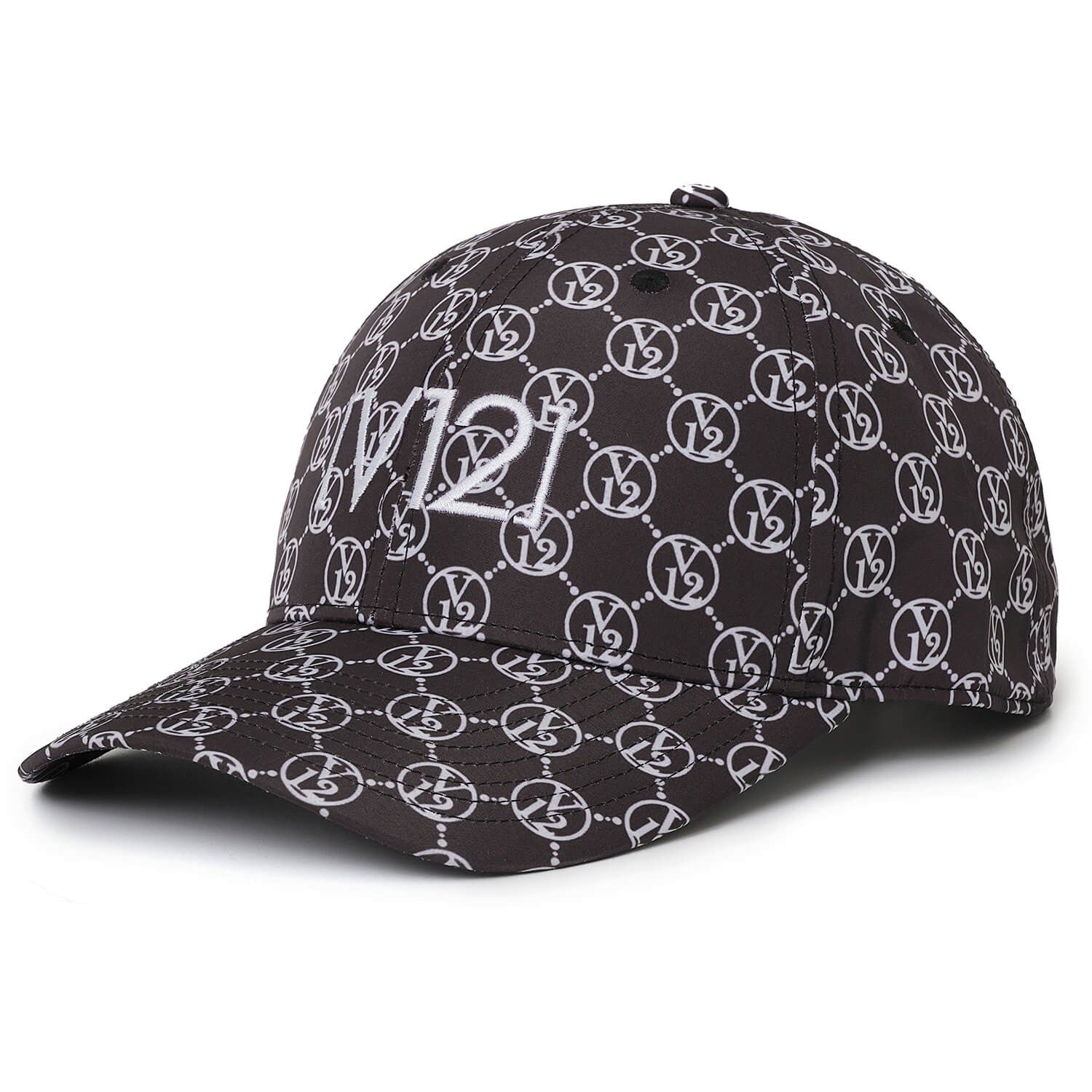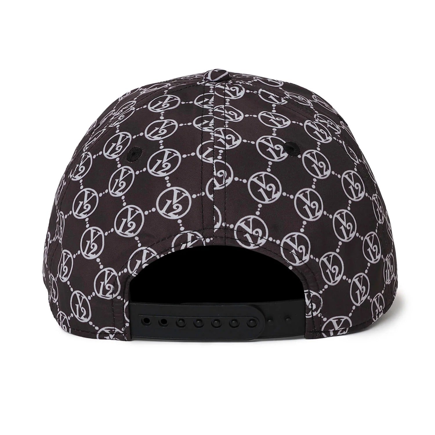 V12オリジナルのモノグラム柄を全面に施した大胆なキャップ。