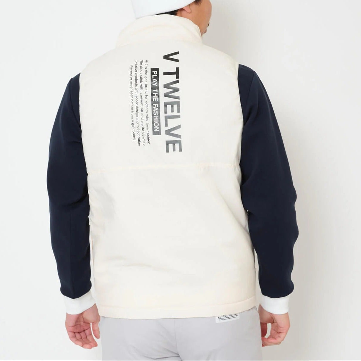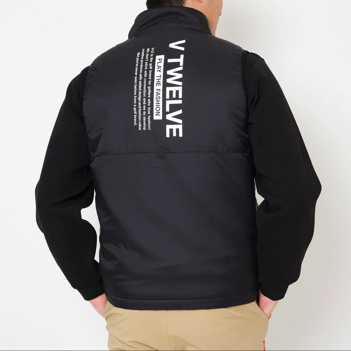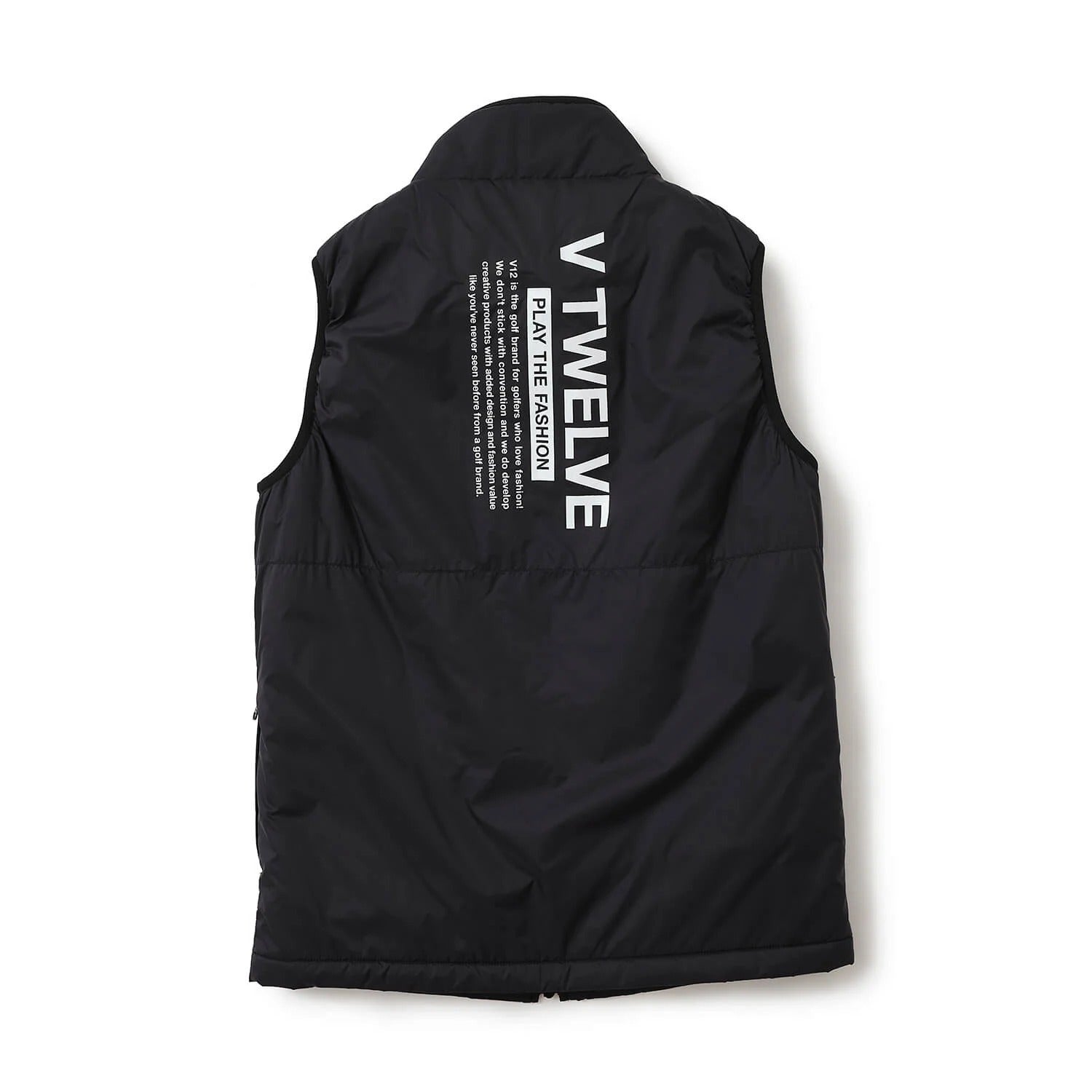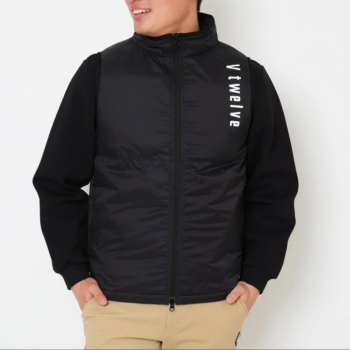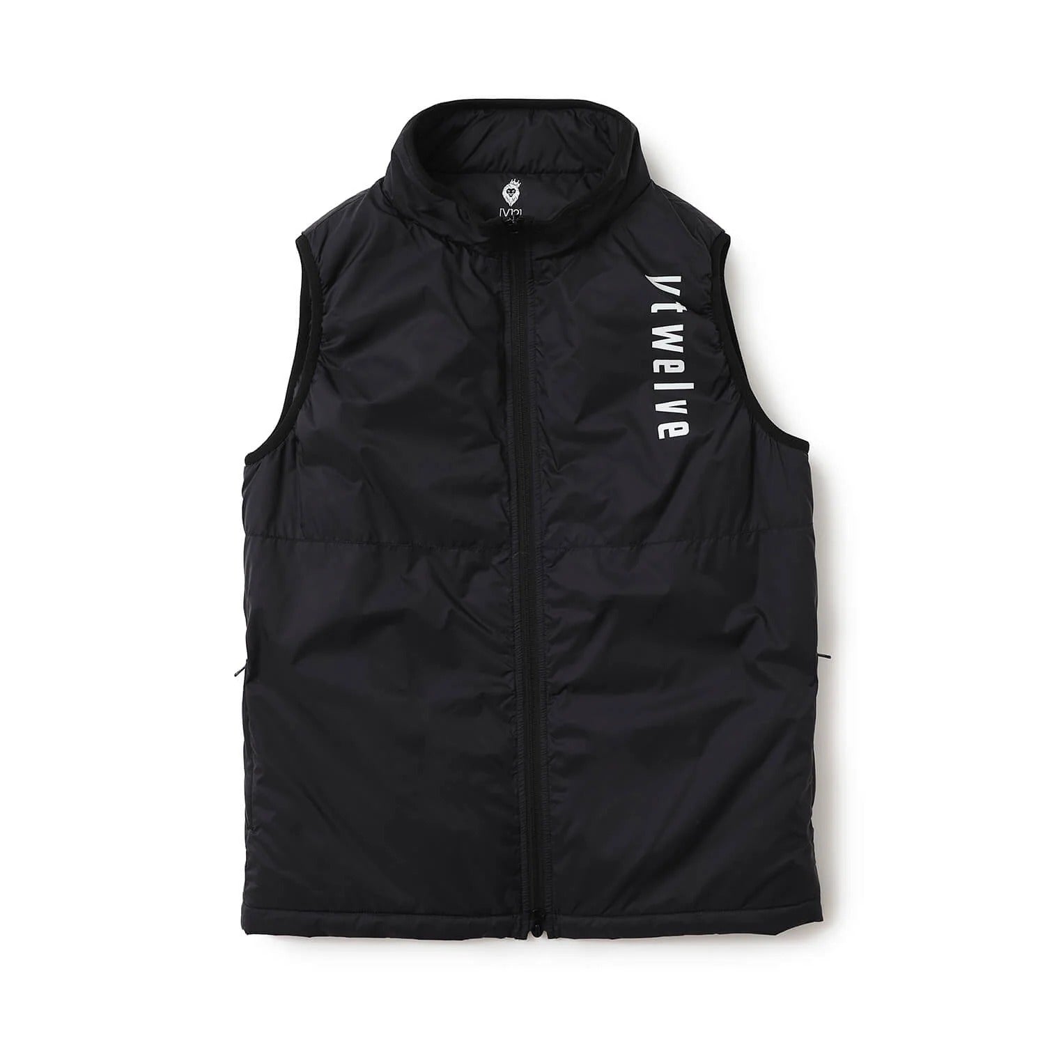 シンプルなデザインにブランドロゴを配置した中綿ベスト。