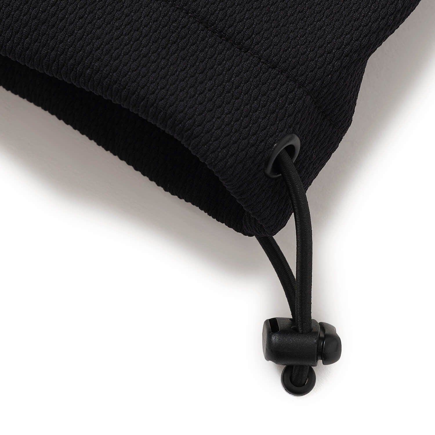 リブ仕様の袖、ドローコードを配置した裾がアクティブな印象。