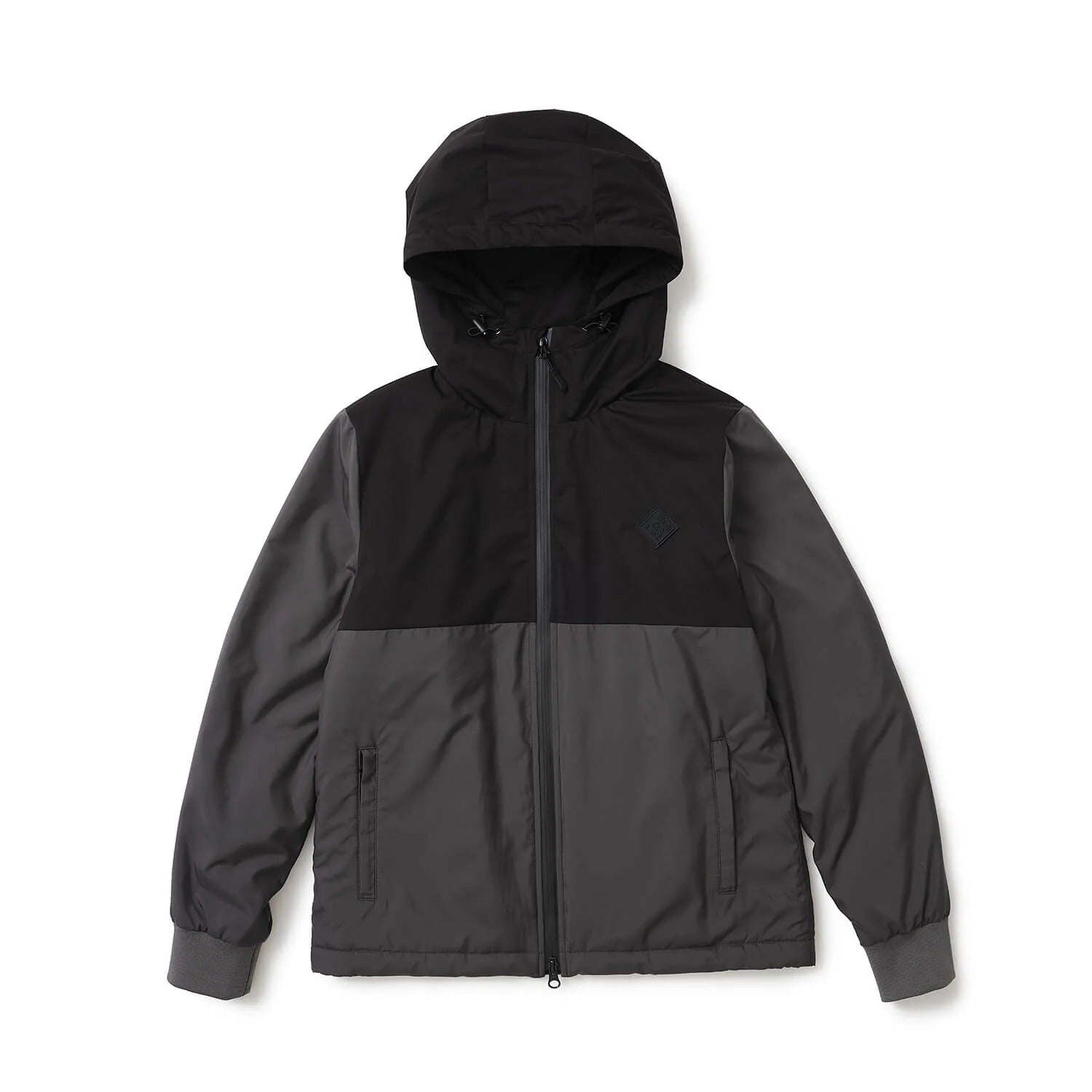 大胆な切り替えデザインが目を引く中綿ジャケット。