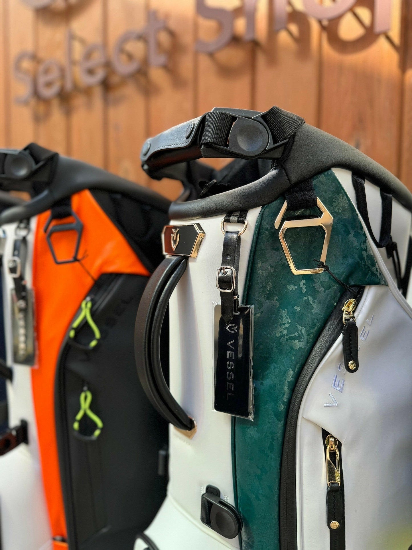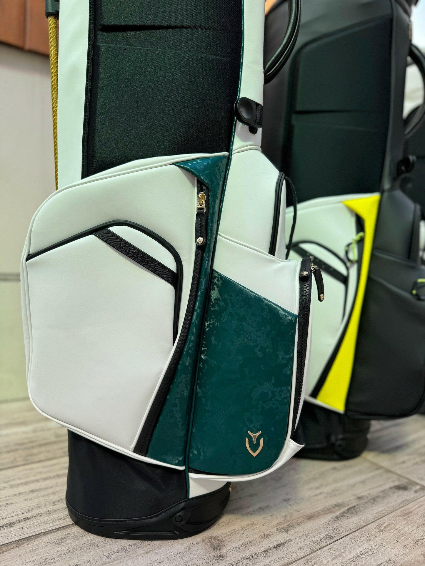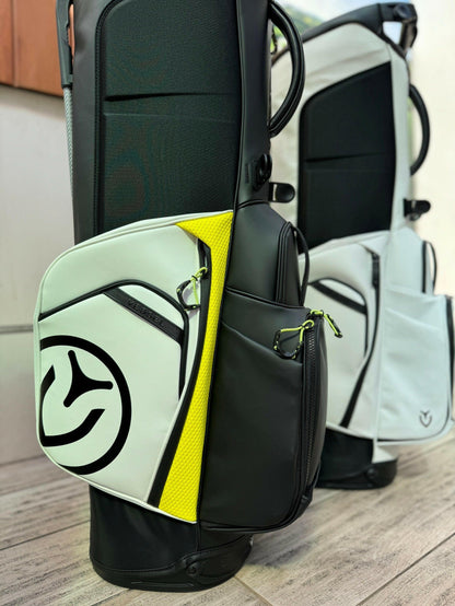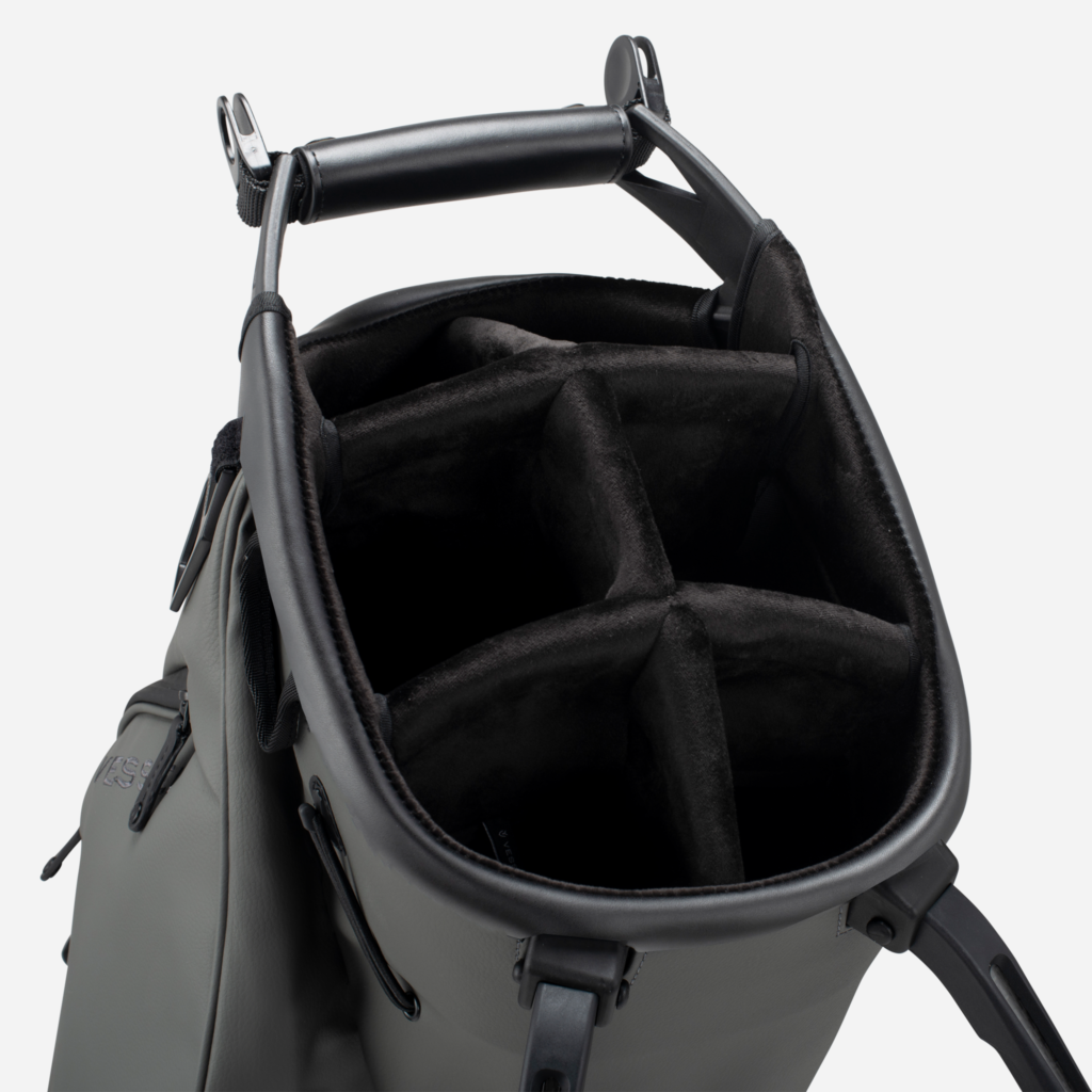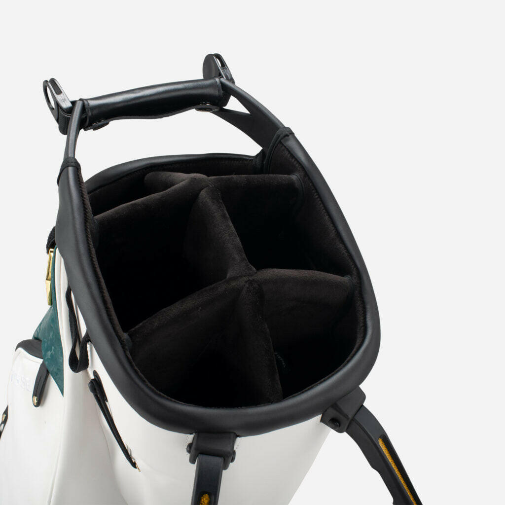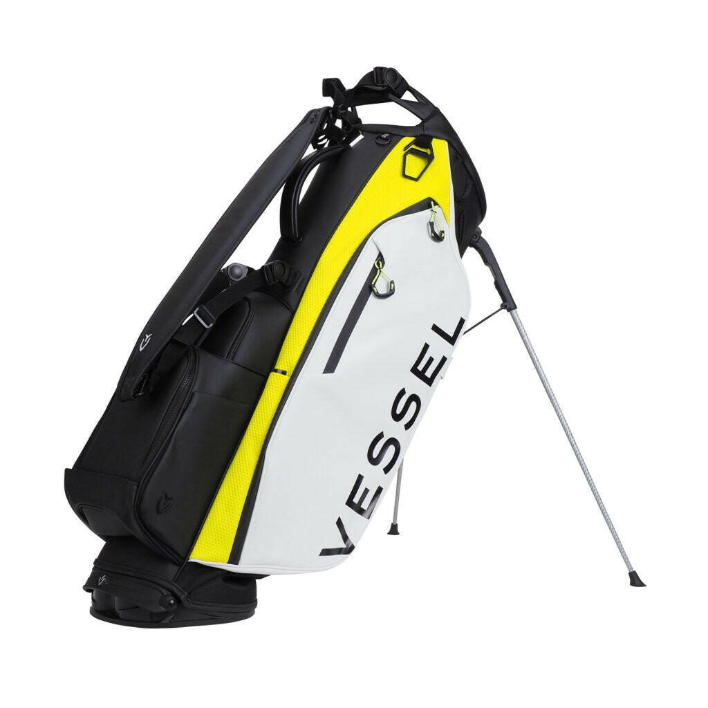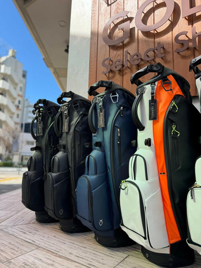 - ※VESSELのスタンドバッグは、スタンドを広げた状態での使用を前提に設計・製造されております。クラブを入れたままで、スタンドをたたみバッグを立てた場合、バッグが傾いたり、転倒する恐れがございます。ご使用に当たっては、スタンドを広げた状態でご利用ください。
